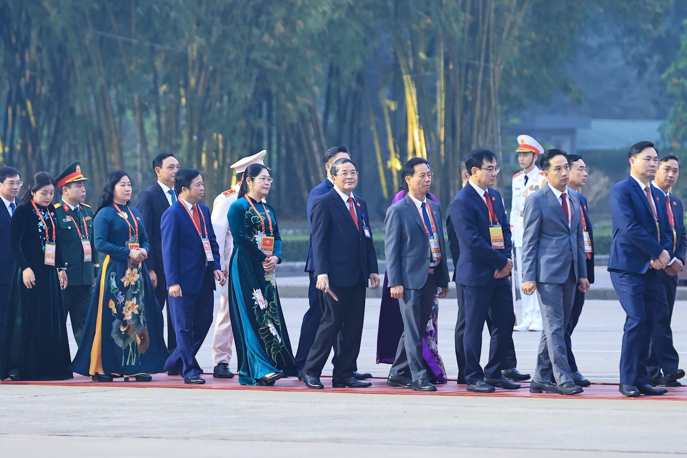 Lãnh đạo Đảng, Nhà nước và đại biểu dự Đại hội lần thứ XIV của Đảng vào Lăng viếng Chủ tịch Hồ Chí Minh. Ảnh: Nhật Bắc
