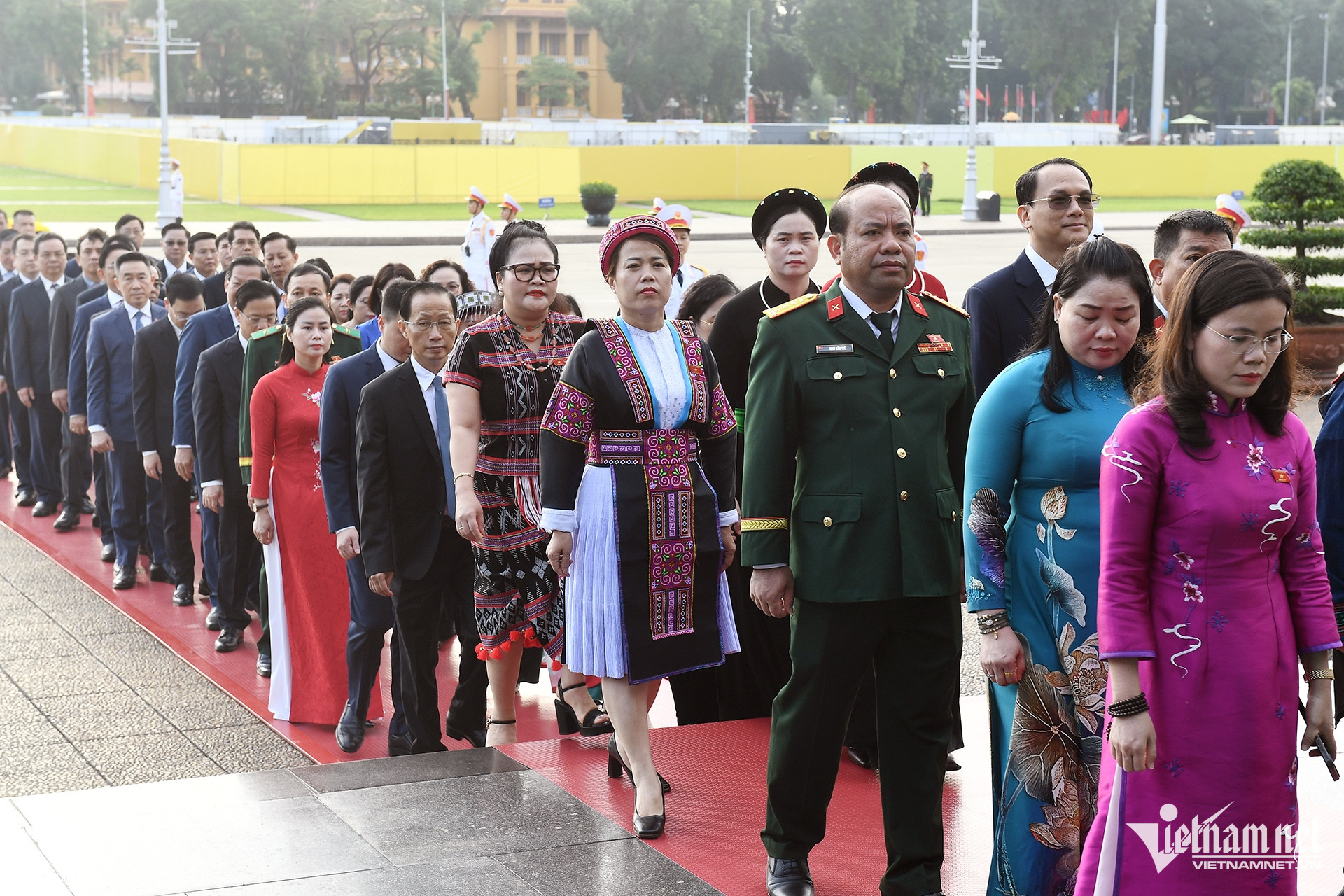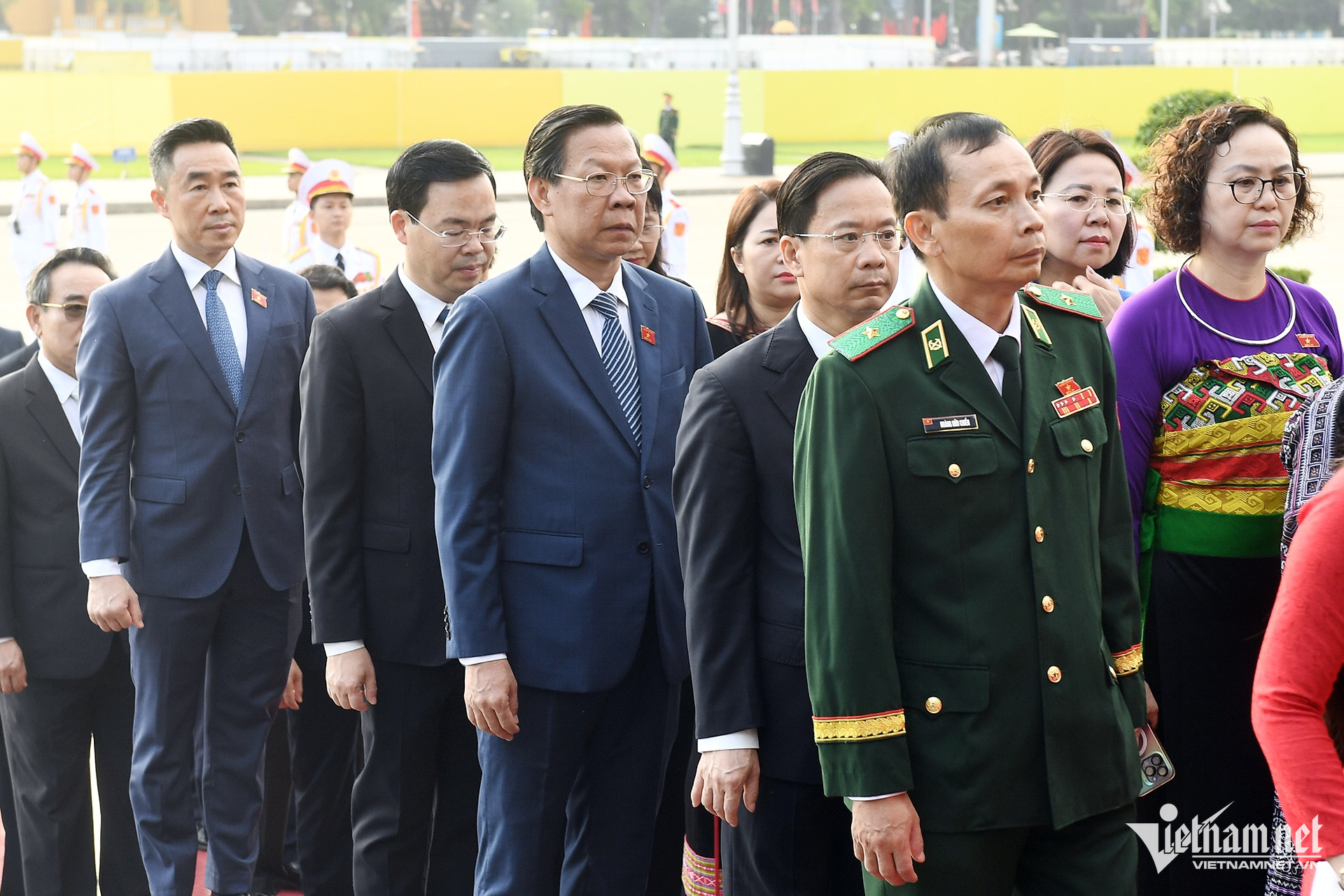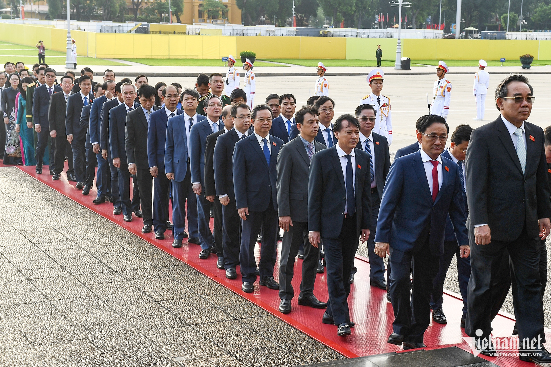 Lãnh đạo Đảng, Nhà nước cùng các đại biểu Quốc hội trước cửa Lăng Chủ tịch Hồ Chí Minh.
