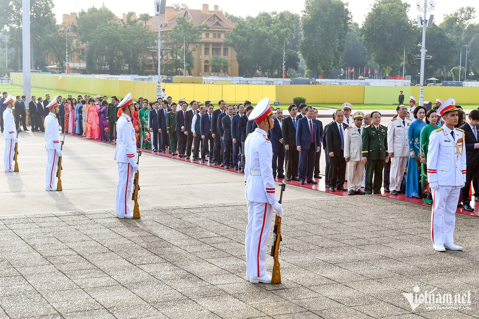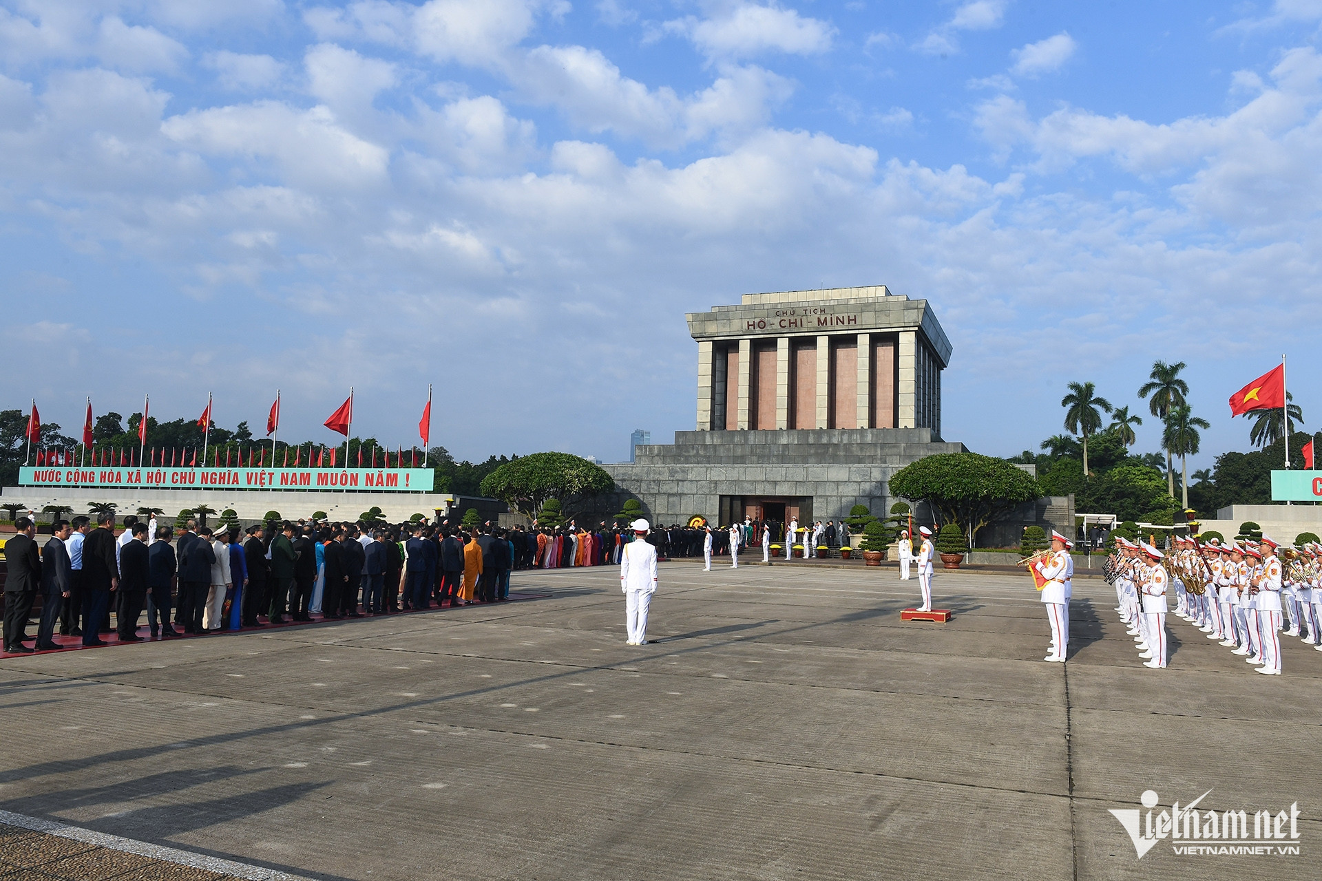 Các lãnh đạo Đảng và Nhà nước kính cẩn nghiêng mình, tỏ lòng biết ơn vô hạn, lòng thành kính tưởng nhớ công lao to lớn của Chủ tịch Hồ Chí Minh đối với sự nghiệp đấu tranh giải phóng dân tộc, thống nhất đất nước, xây dựng Tổ quốc Việt Nam xã hội chủ nghĩa hòa bình, độc lập, thống nhất.