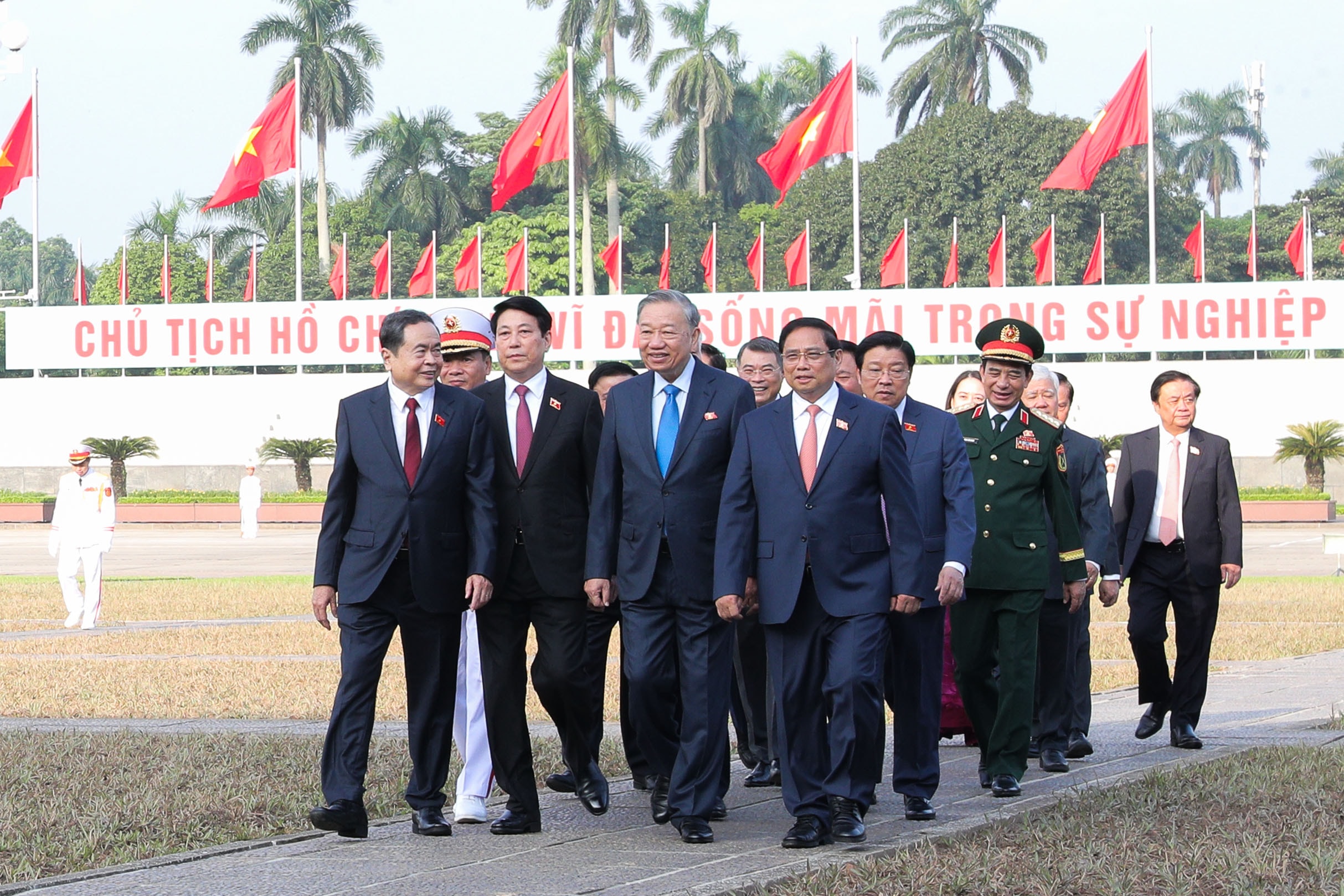 Lãnh đạo Đảng, Nhà nước và đại biểu Quốc hội dự Kỳ họp thứ Mười tưởng niệm Chủ tịch Hồ Chí Minh. Ảnh: Hồ Long