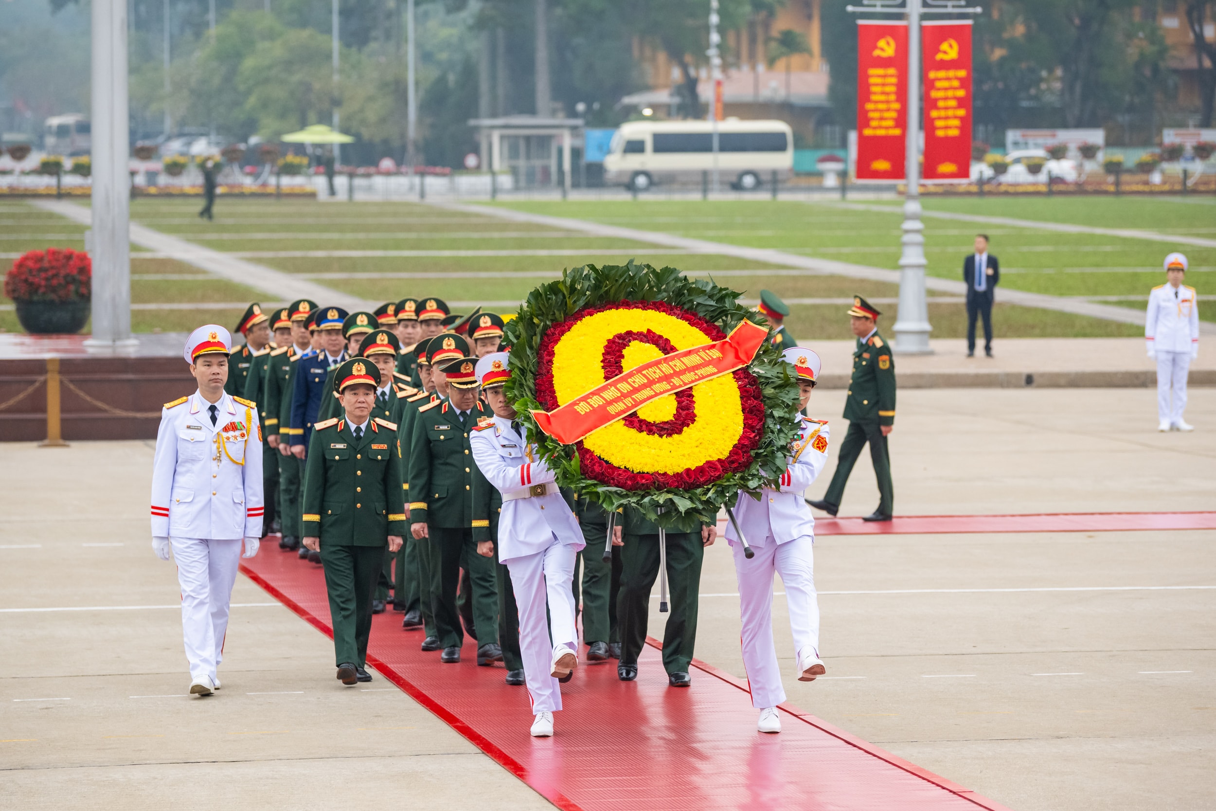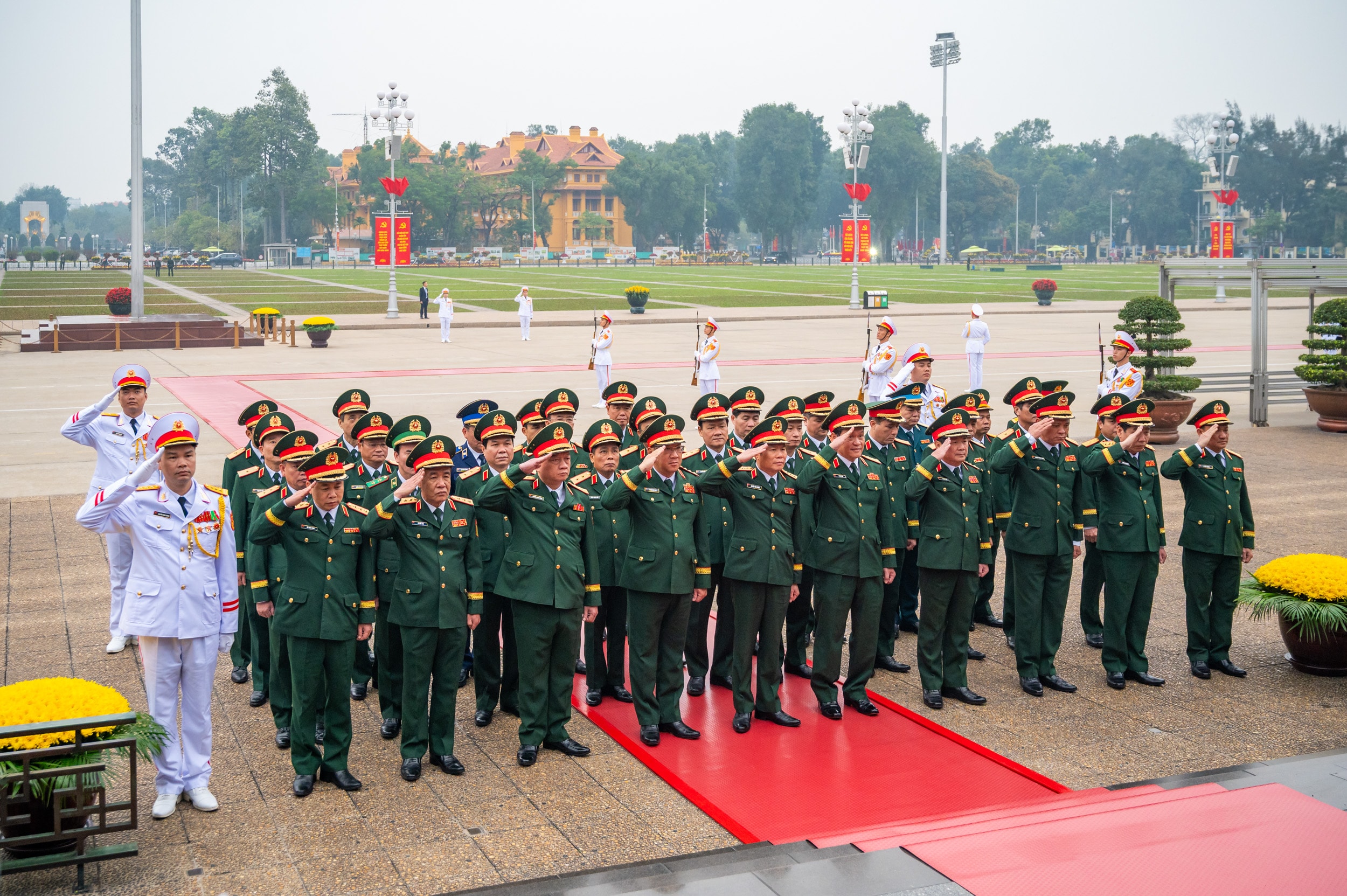 Đoàn Quân ủy Trung ương, Bộ Quốc phòng vào Lăng viếng Chủ tịch Hồ Chí Minh. Ảnh: Phạm Thắng