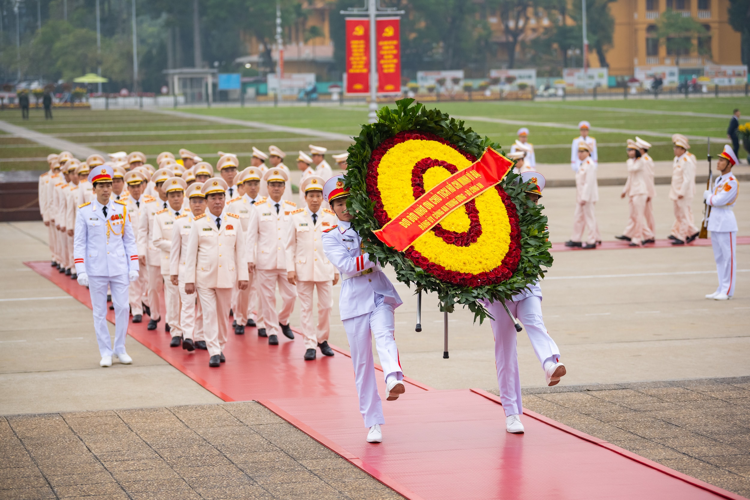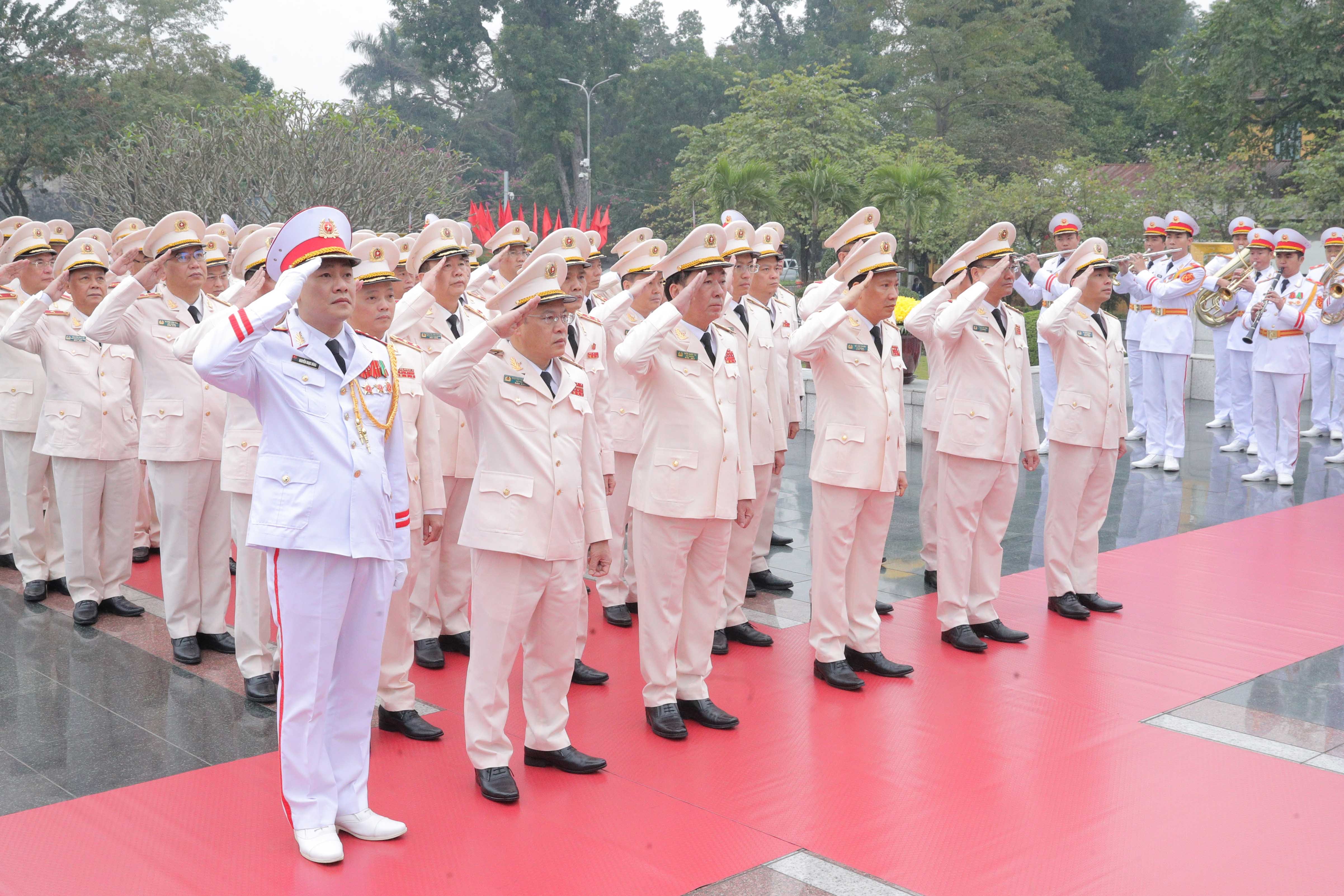 Đoàn Đảng ủy Công an Trung ương - Bộ Công an vào Lăng viếng Chủ tịch Hồ Chí Minh. Ảnh: Phạm Thắng