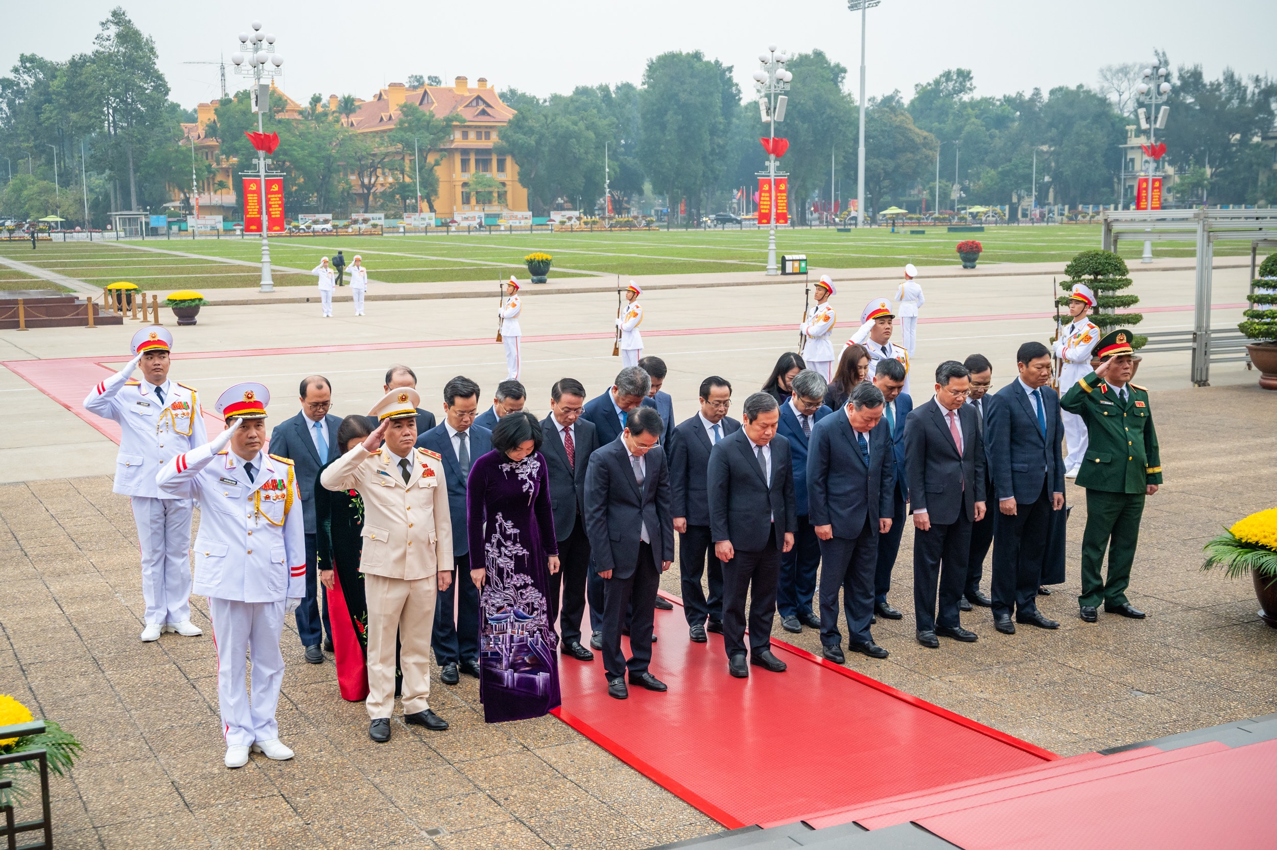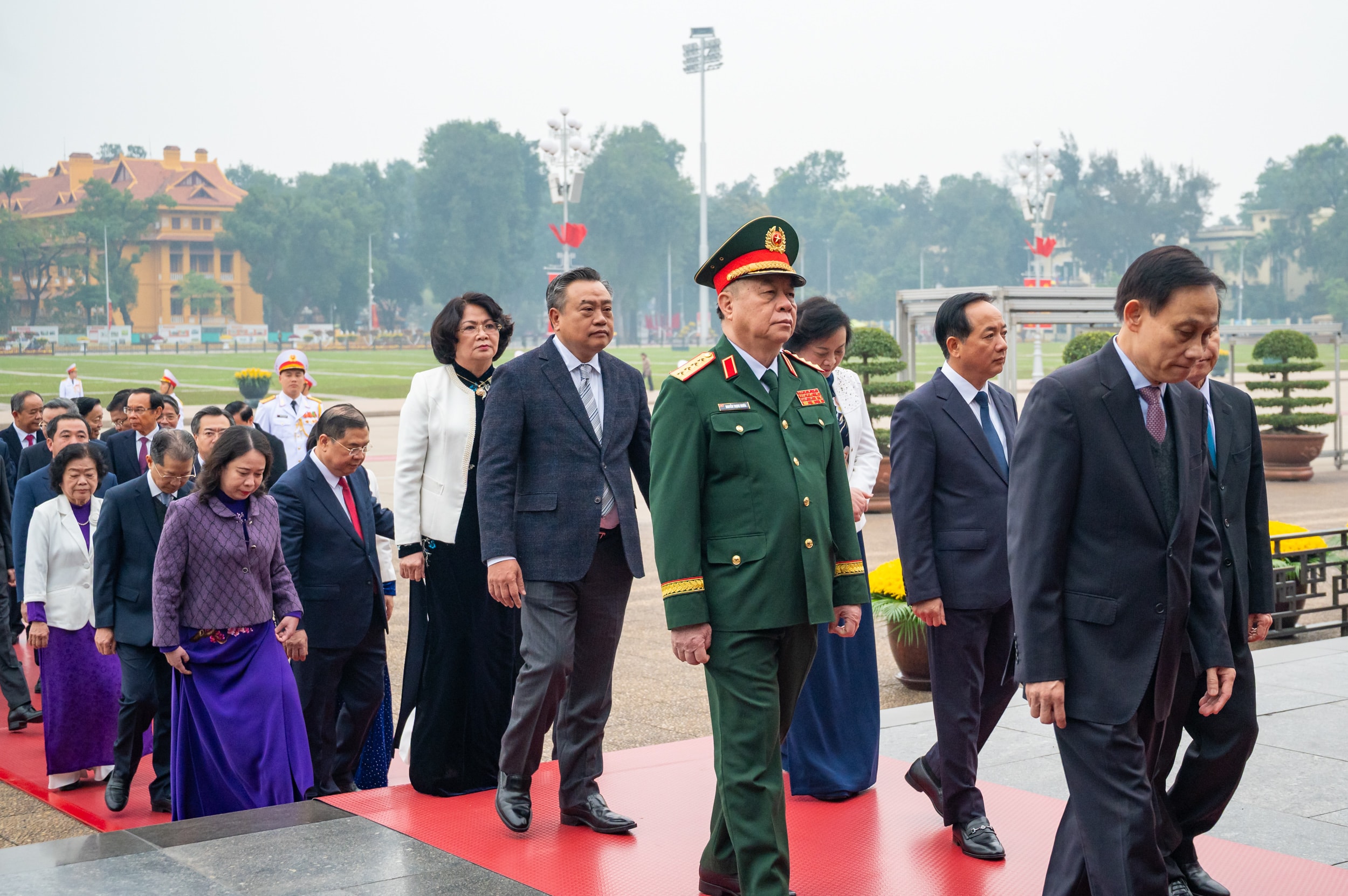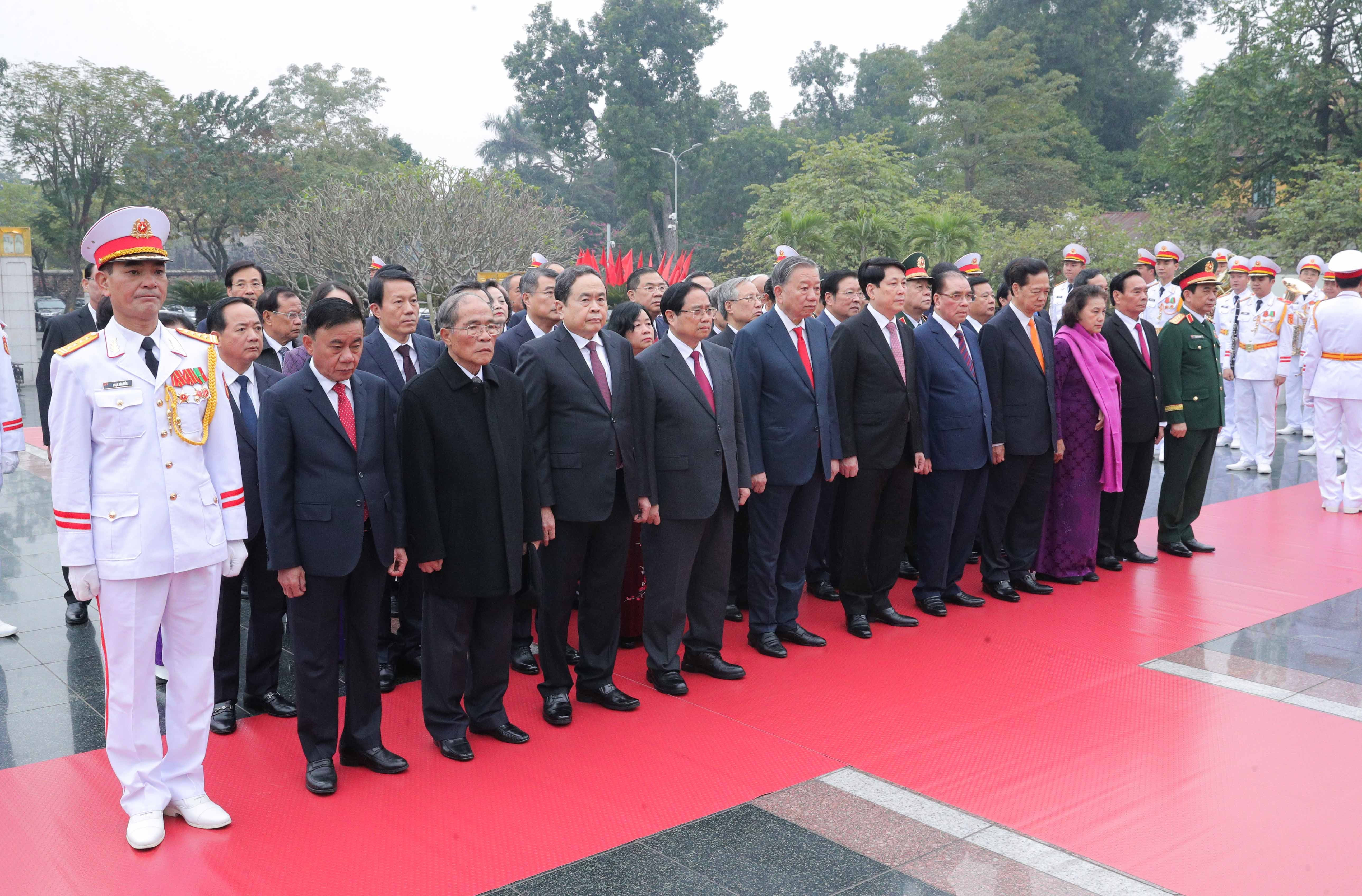 Đoàn đại biểu lãnh đạo, nguyên lãnh đạo Đảng, Nhà nước, Ủy ban Mặt trận Tổ quốc Việt Nam vào Lăng viếng Chủ tịch Hồ Chí Minh. Ảnh: Phạm Thắng