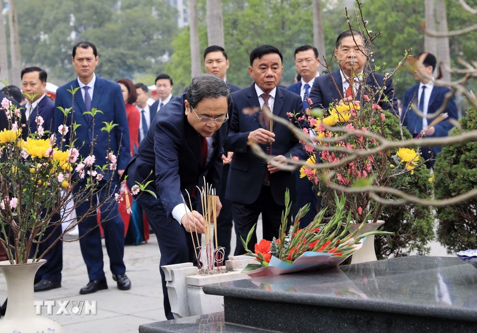 Chủ tịch Quốc hội Trần Thanh Mẫn dâng hương tưởng niệm các vị tiền bối cách mạng và các Anh hùng, Liệt sỹ tại Nghĩa trang Mai Dịch, Hà Nội.