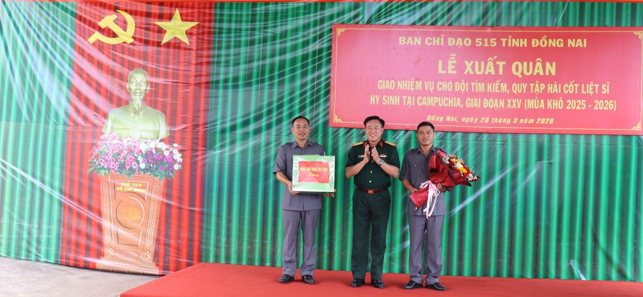 Cùng ngày, tại Cửa khẩu quốc tế Hoa Lư, đoàn công tác dự lễ xuất quân giao nhiệm vụ cho Đội K72 (Bộ Chỉ huy Quân sự tỉnh Đồng Nai) lên đường tìm kiếm, quy tập hài cốt liệt sĩ hy sinh ở Campuchia.