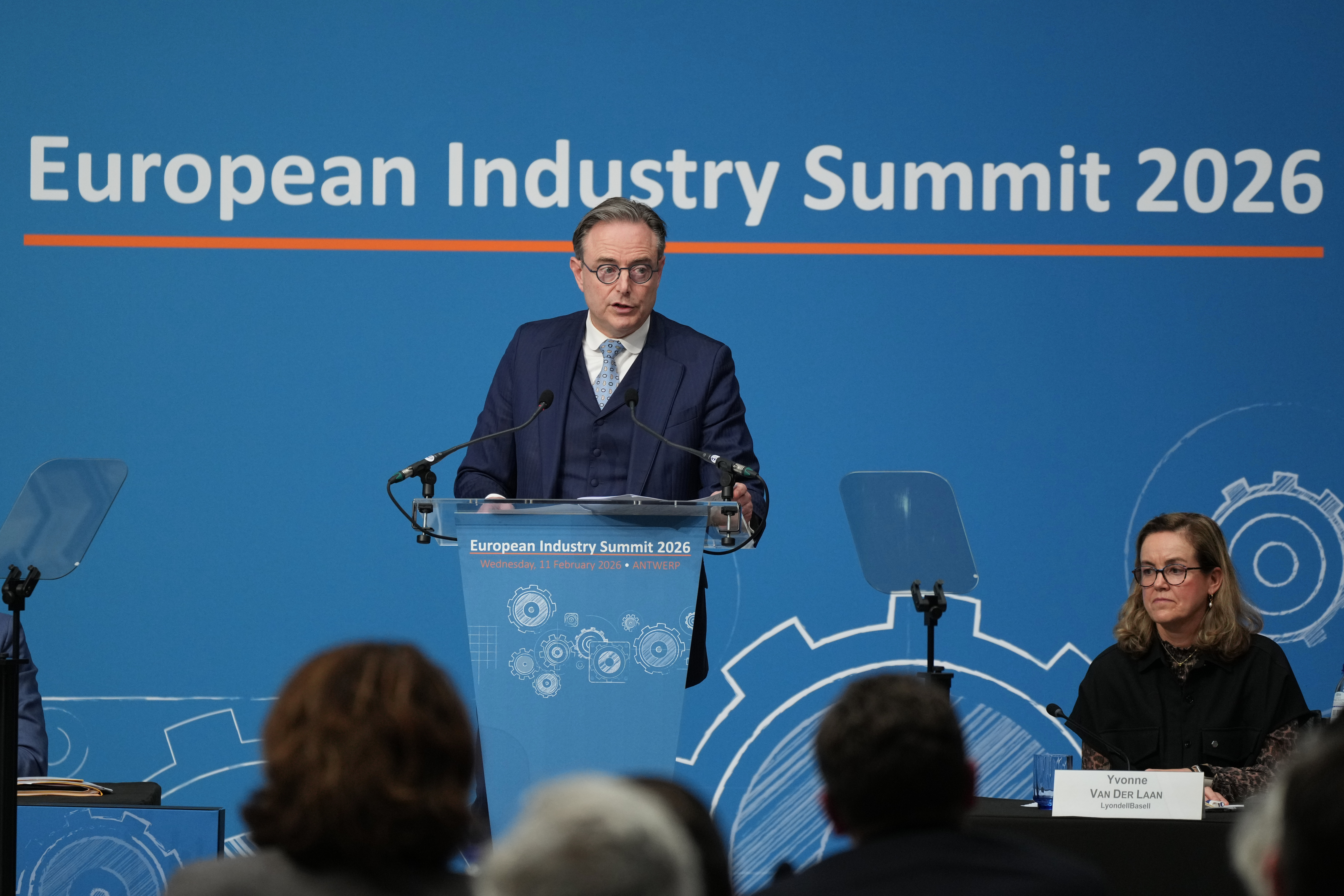 Thủ tướng Bỉ Bart De Wever phát biểu tại Hội nghị Thượng đỉnh Công nghiệp châu Âu ở Antwerp, Bỉ, ngày 11/2/2026. (Ảnh: AP/Virginia Mayo)