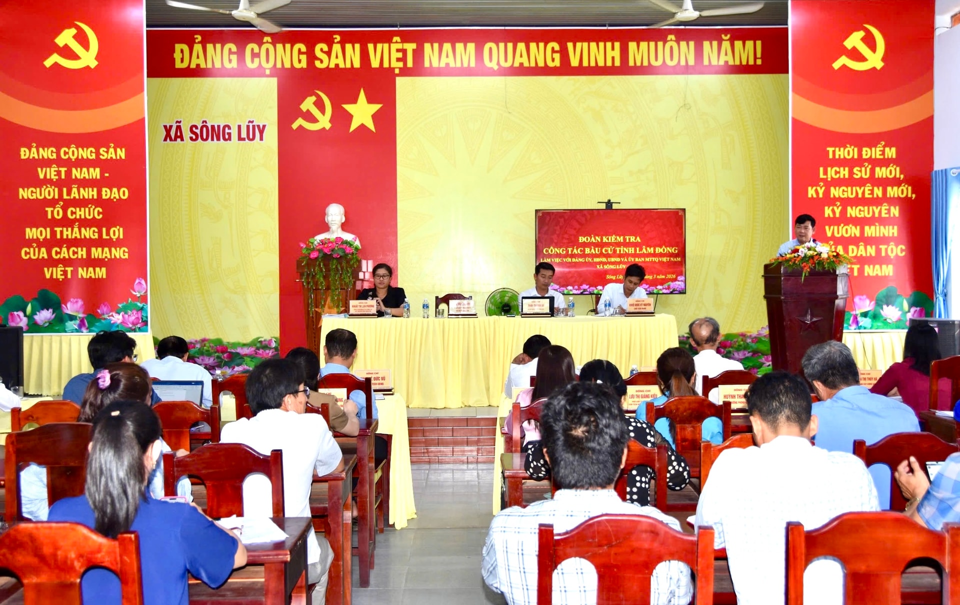 Toàn cảnh buổi làm việc, kiểm tra công tác bầu cử tại xã Sông Lũy
