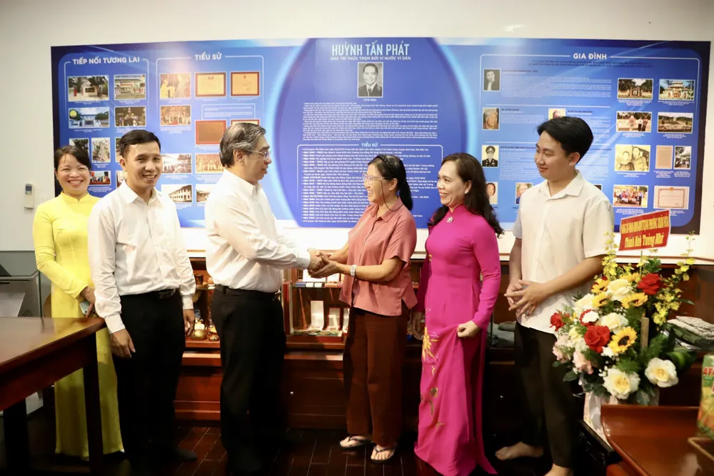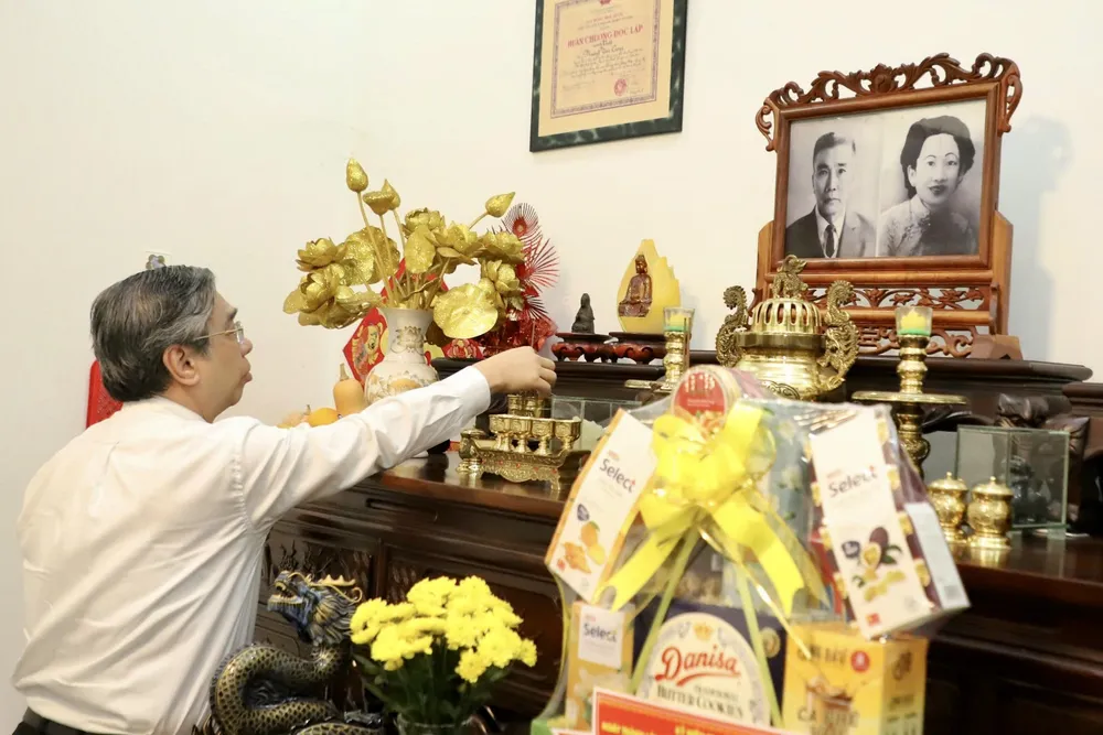 Ông Nguyễn Phước Lộc thăm hỏi, tri ân sự đóng góp của cố kiến trúc sư Huỳnh Tấn Phát đối với sự nghiệp giải phóng dân tộc. Ảnh: BẢO PHƯƠNG