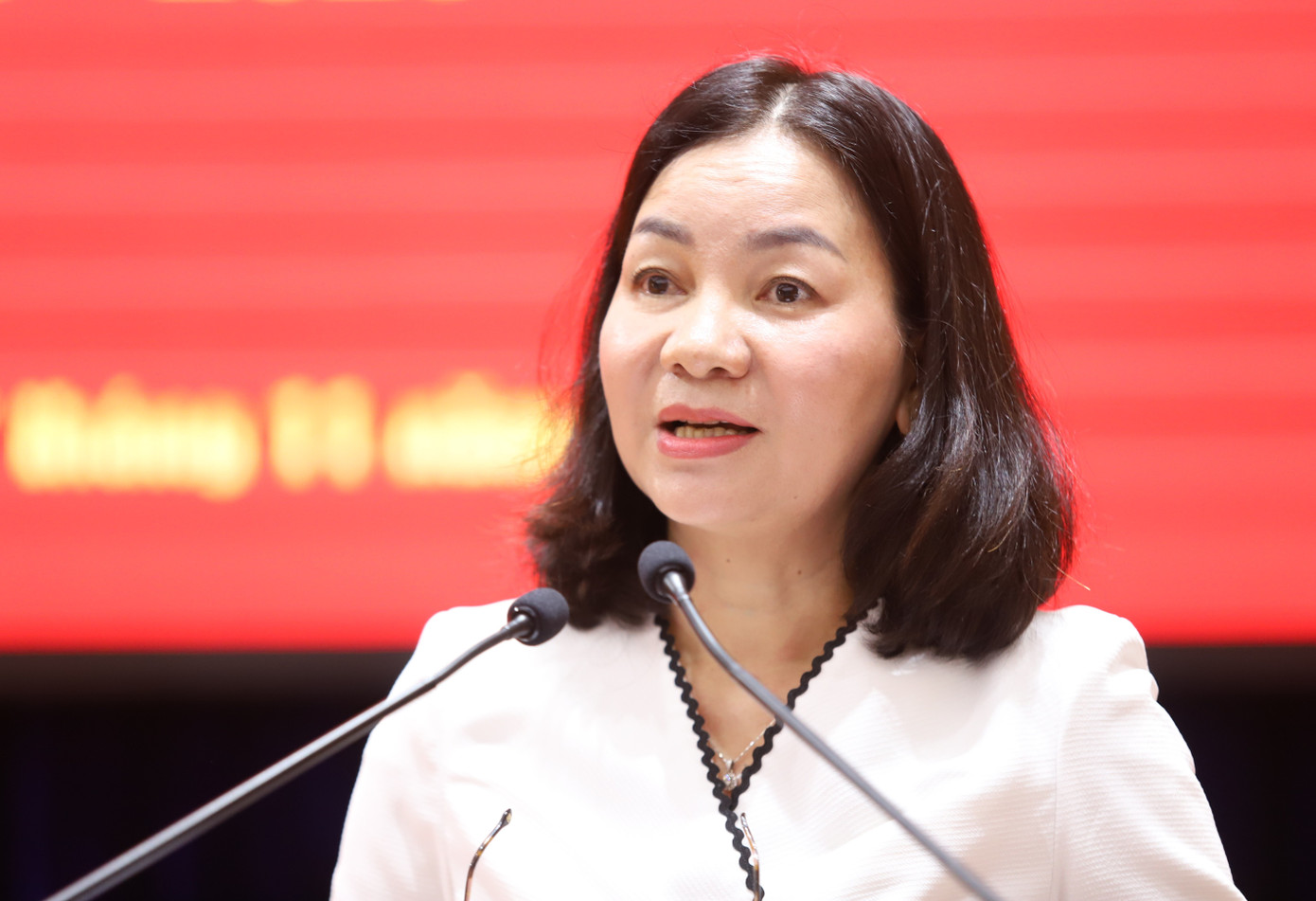 Phó Chủ tịch Thường trực Ủy ban MTTQ Việt Nam thành phố Trương Thị Bích Hạnh báo cáo tiến độ chuẩn bị tổ chức Đại hội. Ảnh: Ngô Tùng