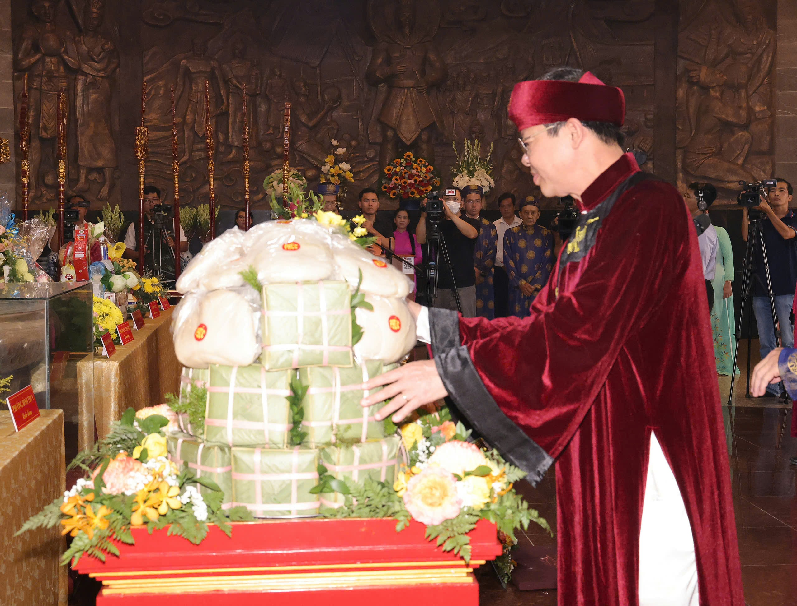 Chủ tịch UBND TP. Cần Thơ Trương Cảnh Tuyên dâng bánh chưng lên các Vua Hùng. Ảnh: Phạm Trung