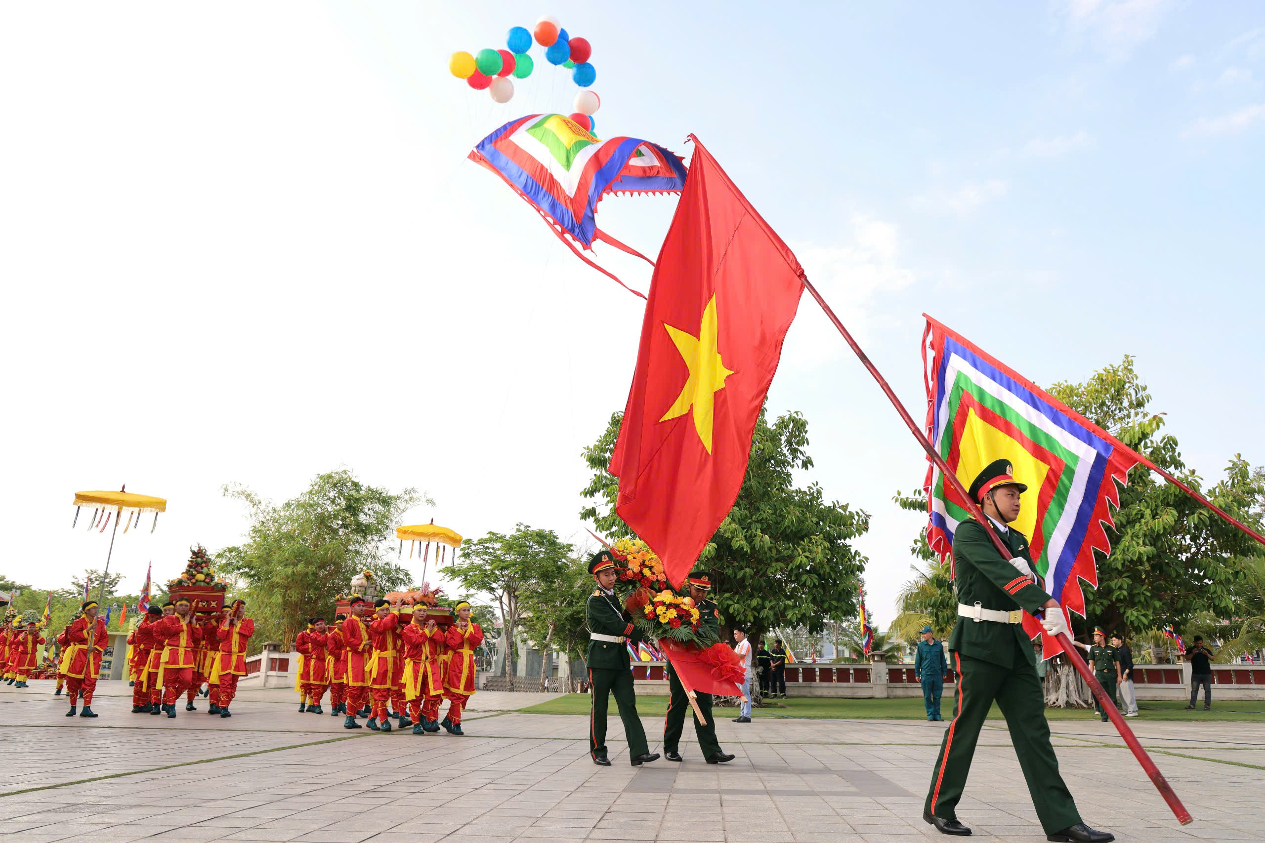 Đoàn lãnh đạo TP. Cần Thơ tiến vào dâng hương, dâng hoa, quả lên các Vua Hùng. Ảnh: Phạm Trung
