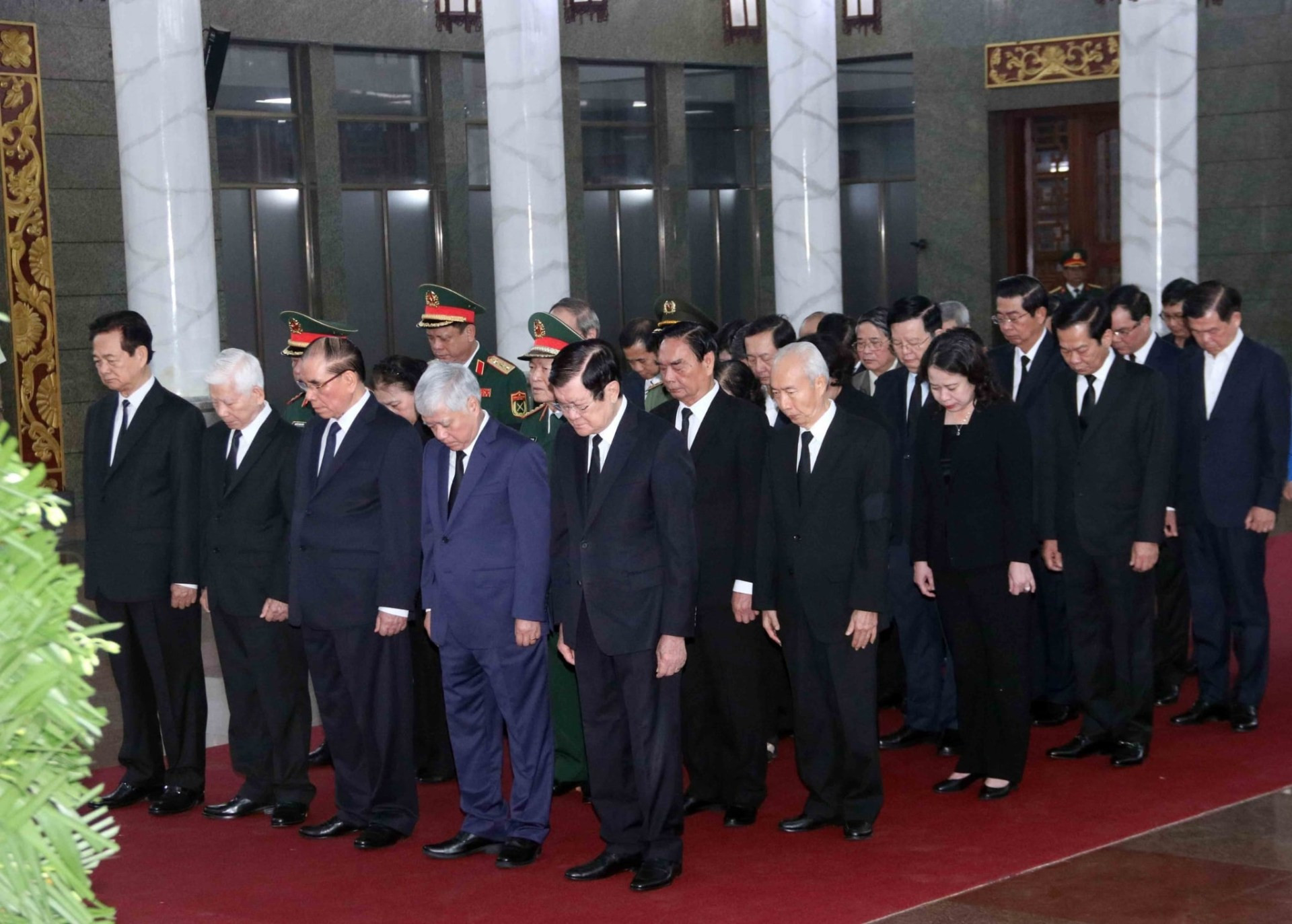 Tham gia đoàn viếng có: Nguyên Tổng Bí thư Nông Đức Mạnh, nguyên Chủ tịch nước Nguyễn Minh Triết, nguyên Chủ tịch nước Trương Tấn Sang, nguyên Thủ tướng Nguyễn Tấn Dũng, nguyên Chủ tịch Quốc hội Nguyễn Thị Kim Ngân...