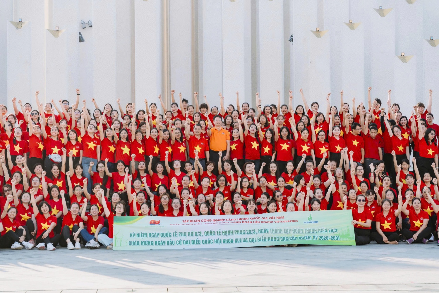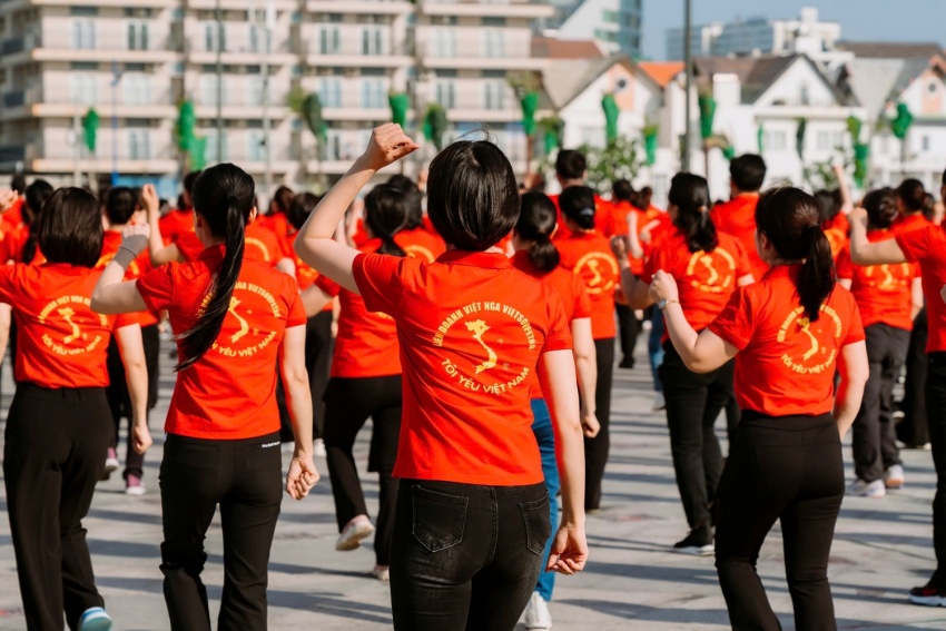 Trong không khí phấn khởi của những ngày tháng Ba, gần 400 nữ công và đoàn viên, thanh niên Vietsovpetro trong trang phục áo cờ đỏ sao vàng đã nhuộm thắm một góc quảng trường, tạo nên hình ảnh vô cùng ấn tượng và đầy sức sống.