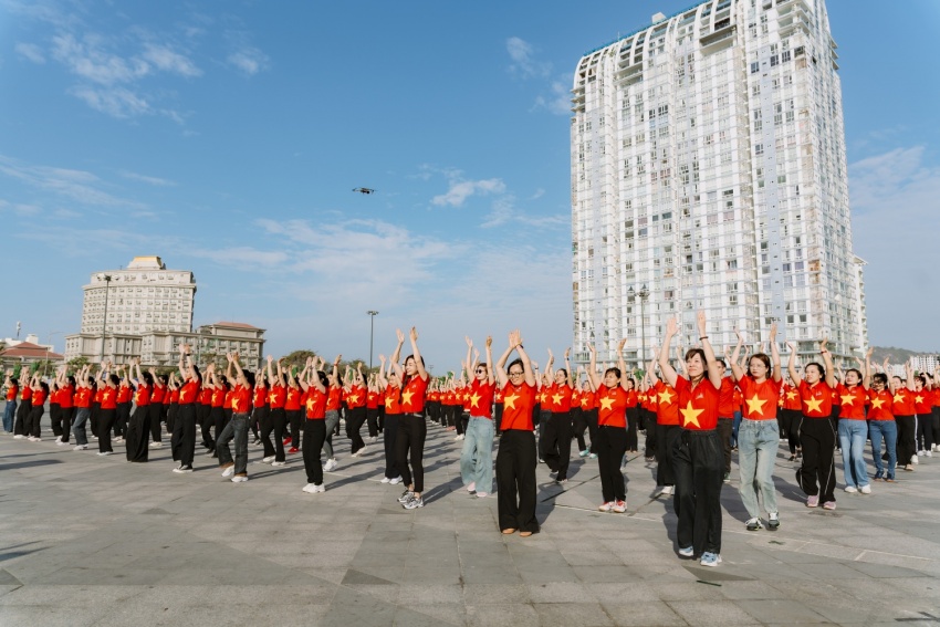 Màn đồng diễn dân vũ quy mô lớn thể hiện sự đoàn kết và niềm tự hào của những người lao động năng lượng - dầu khí hướng về quê hương, đất nước.