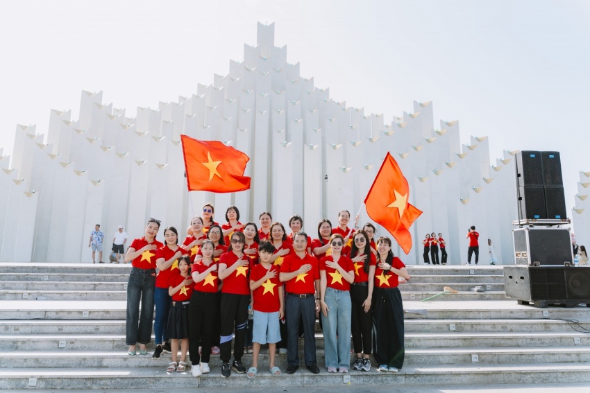 Sắc đỏ của màu áo cờ đỏ sao vàng nhuộm thắm Quảng trường tháp Tam Thắng trong chương trình “Phụ nữ Vietsovpetro - Tự hào là người Việt Nam”.