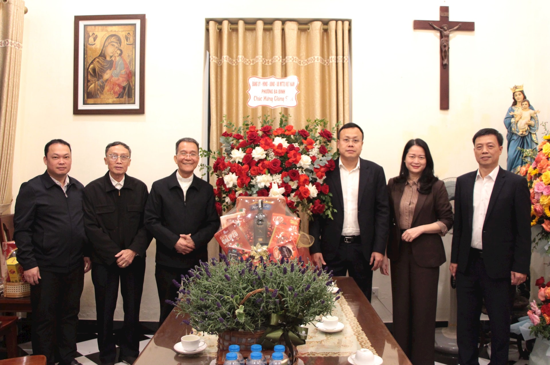 Lãnh đạo Đảng ủy - HĐND - UBND - Ủy ban Mặt trận Tổ quốc Việt Nam phường Ba Đình chúc mừng Giáo xứ Cửa Bắc. Ảnh: MH