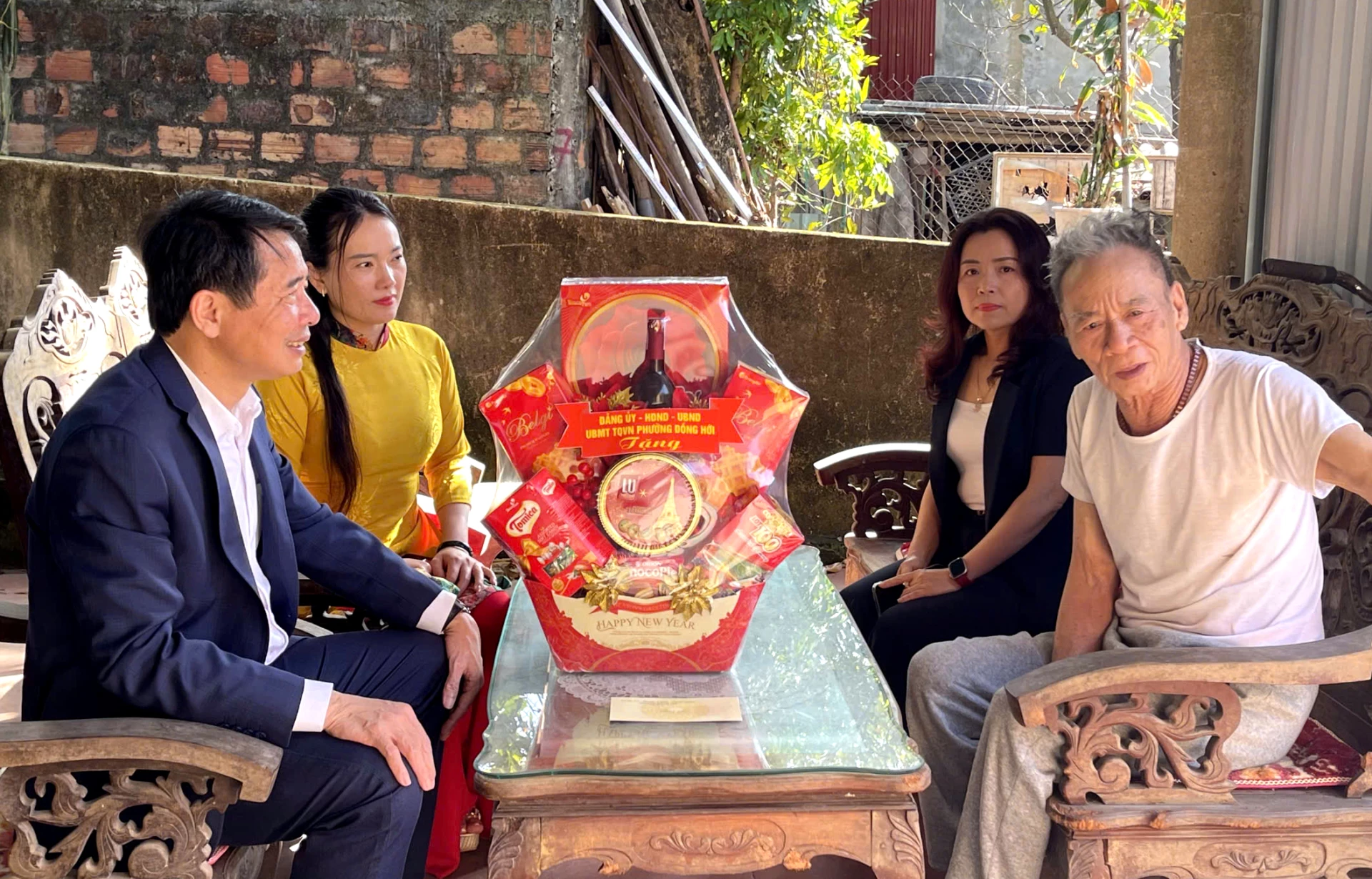 Theo đó, phường Đồng Hới đã thành lập 8 đoàn công tác đến thăm, tặng quà, động viên các gia đình. Tại các gia đình cán bộ, chiến sĩ đang làm nhiệm vụ nơi biển, đảo xa xôi và các gia đình chính sách, đồng chí Bí thư Đảng ủy phường Đồng Hới Phan Mạnh Hùng cùng các đồng chí lãnh đạo Đảng, chính quyền phường đã ân cần thăm hỏi tình hình đời sống, sức khỏe, gửi lời chúc mừng năm mới an khang, hạnh phúc.
