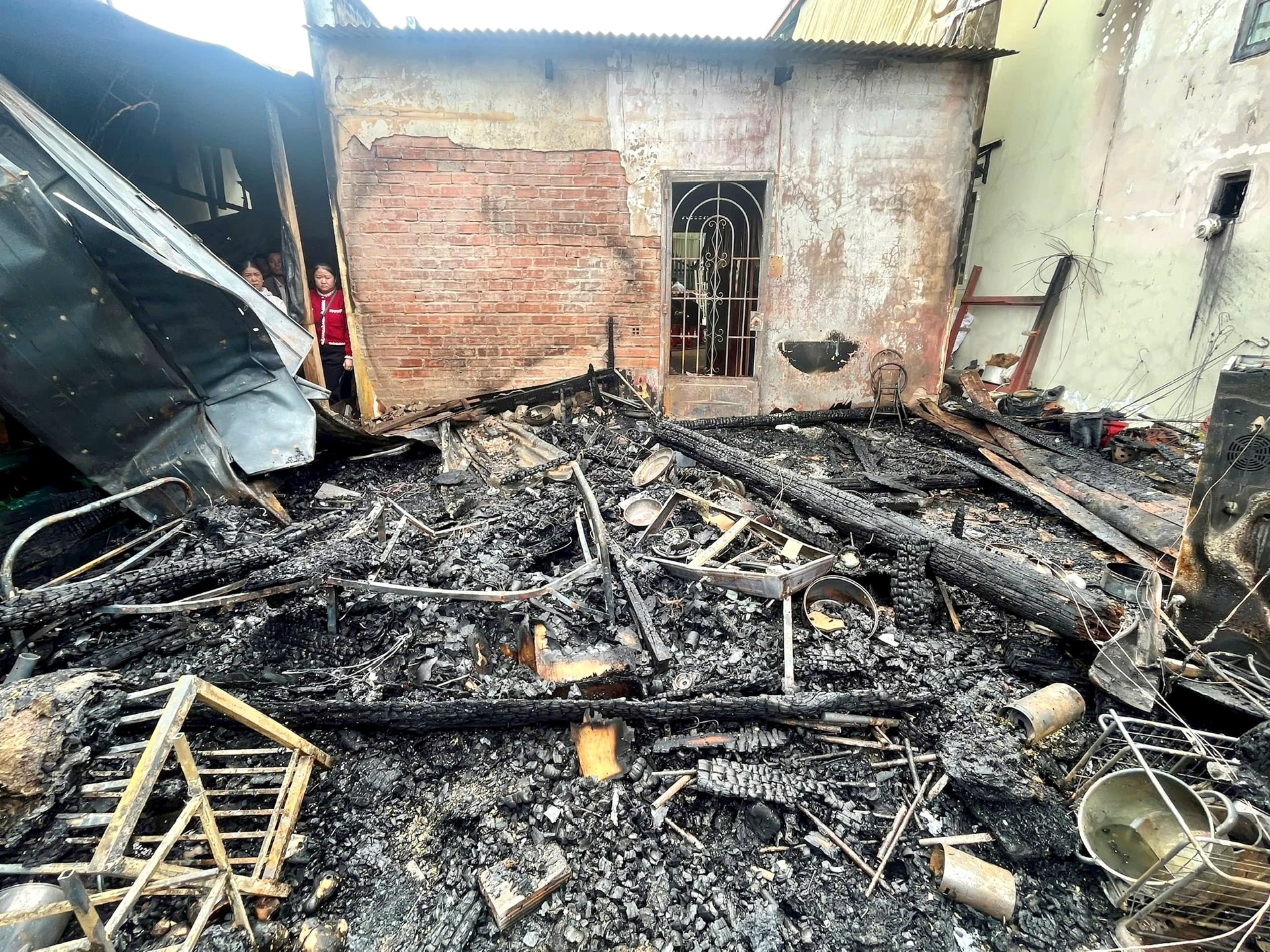 Vụ hỏa hoạn đã thiêu rụi toàn bộ nhà ngang và nhà bếp của gia đình anh Hòa