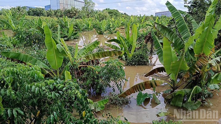 Trong đó, có 15 hộ dân và 2 dãy nhà trọ với 14 phòng bị ngập nặng, nhiều diện tích cây ăn trái và ao cá cũng bị thiệt hại.