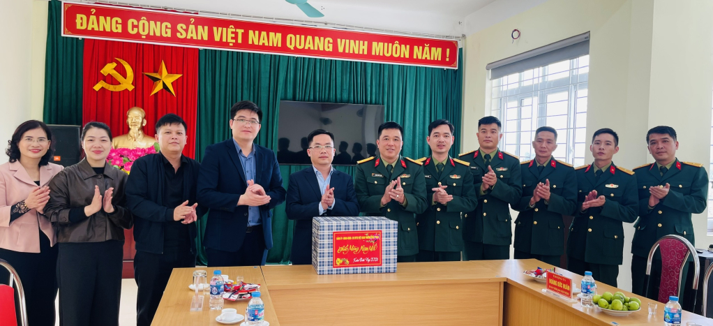 Đồng chí Nguyễn Thế Hoàn, Ủy viên Ban Thường vụ Tỉnh ủy, Bí thư Đảng ủy, Chủ tịch HĐND phường Thục Phán tặng quà Ban Chỉ huy Quân sự phường.