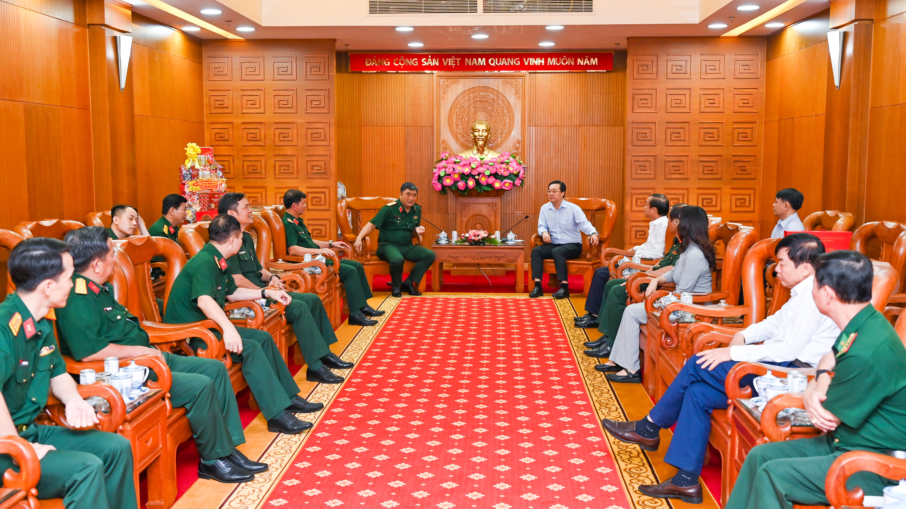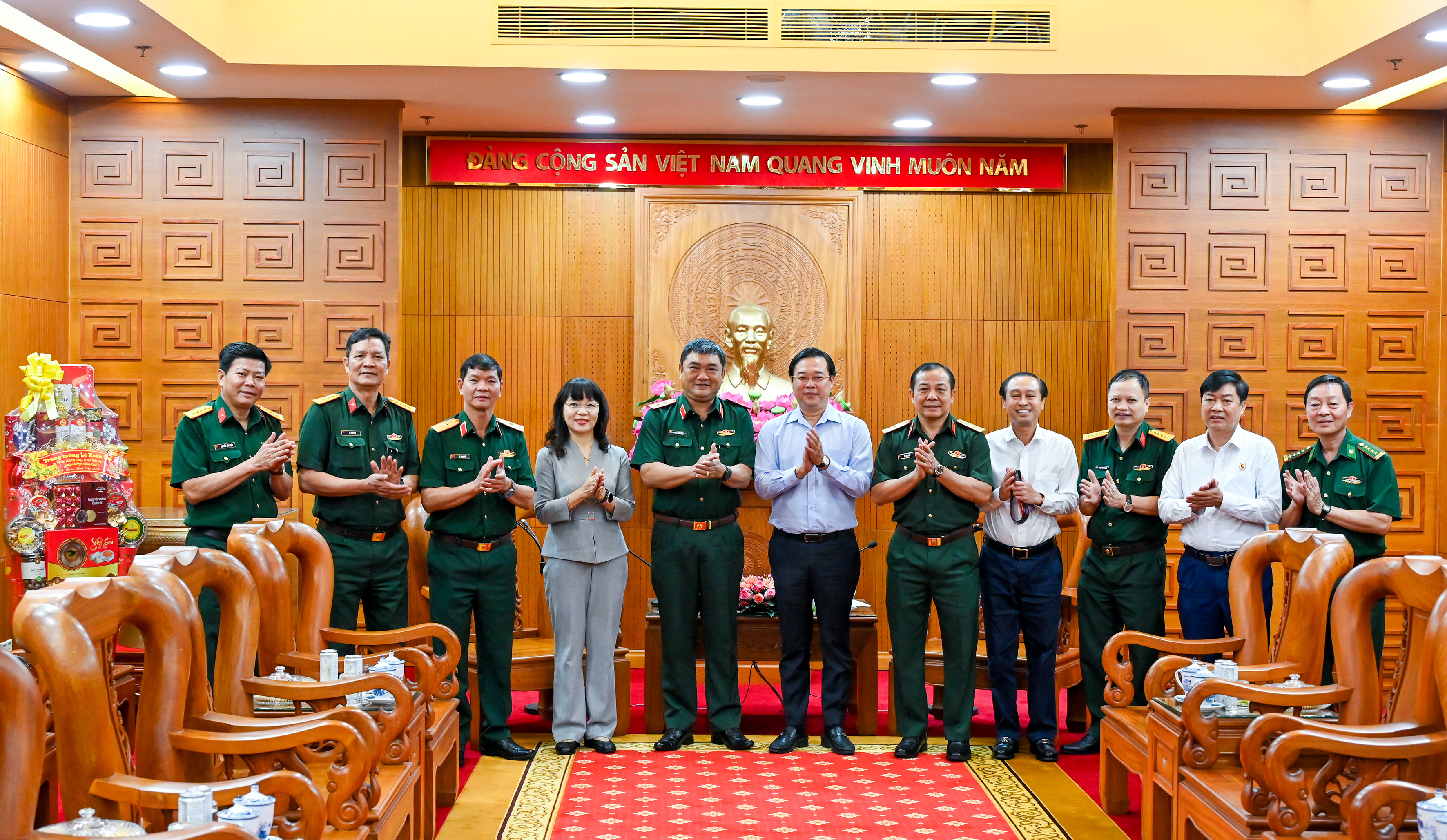 Đồng chí mong muốn Quân khu 7 và các đơn vị tiếp tục đồng hành với sự phát triển ổn định của thành phố thời gian tới; đồng thời chúc toàn thể thủ trưởng, cán bộ, chiến sĩ Quân khu 7 và gia đình đón Xuân vui tươi, hạnh phúc, hoàn thành xuất sắc nhiệm vụ được giao.