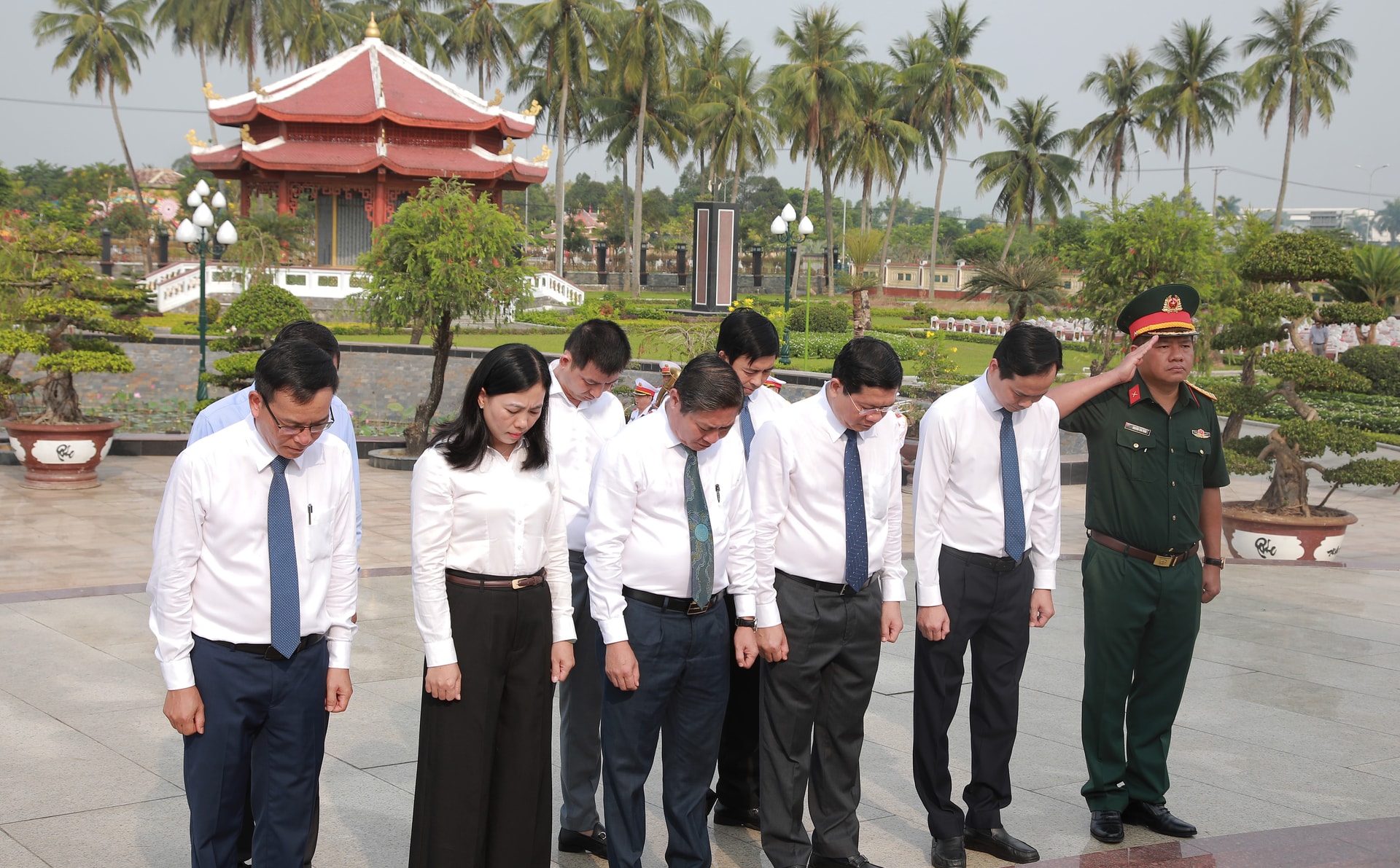 Đoàn đại biểu thành phố dành phút mặc niệm tưởng nhớ các anh hùng liệt sĩ. Ảnh: ĐẮC MẠNH