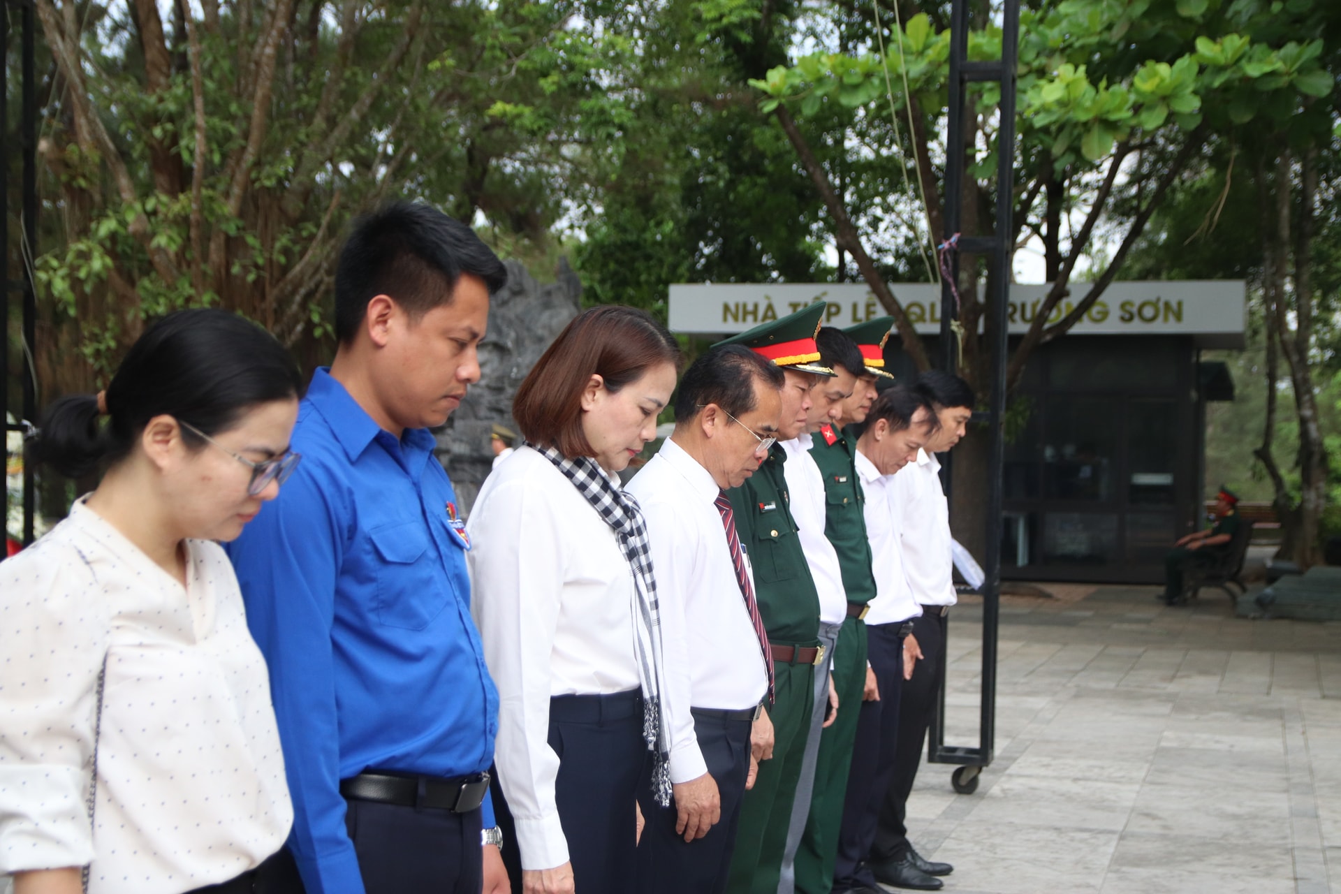 Đoàn đại biểu thành phố Đà Nẵng dành phút mặc niệm tại Nghĩa trang Liệt sĩ Trường Sơn. Ảnh: TRỌNG HUY