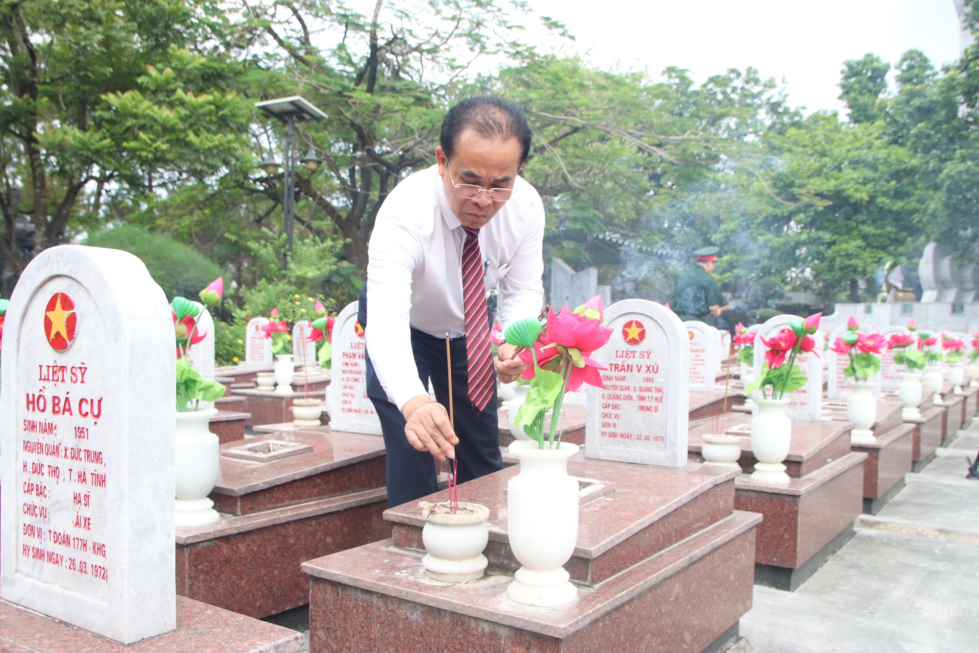 Phó Chủ tịch UBND thành phố Trần Anh Tuấn thắp hương mộ liệt sĩ khu Quảng Nam - Đà Nẵng tại Nghĩa trang liệt sĩ Trường Sơn. Ảnh: TRỌNG HUY