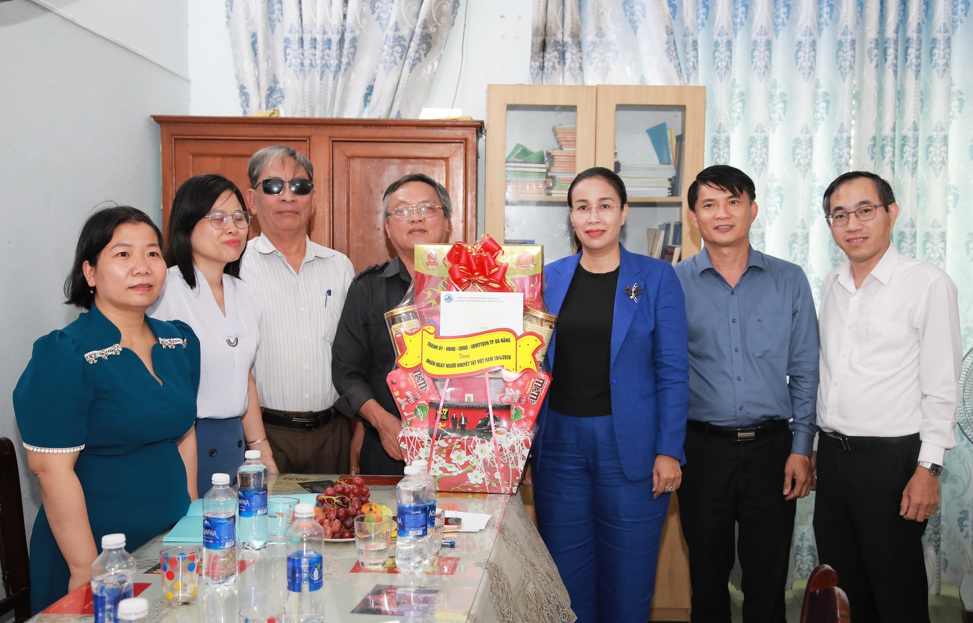 Phó Chủ tịch UBND thành phố Nguyễn Thị Anh Thi (thứ 3, bên phải sang) thăm, tặng quà cho Hội Người mù thành phố Đà Nẵng. Ảnh: ĐẮC MẠNH