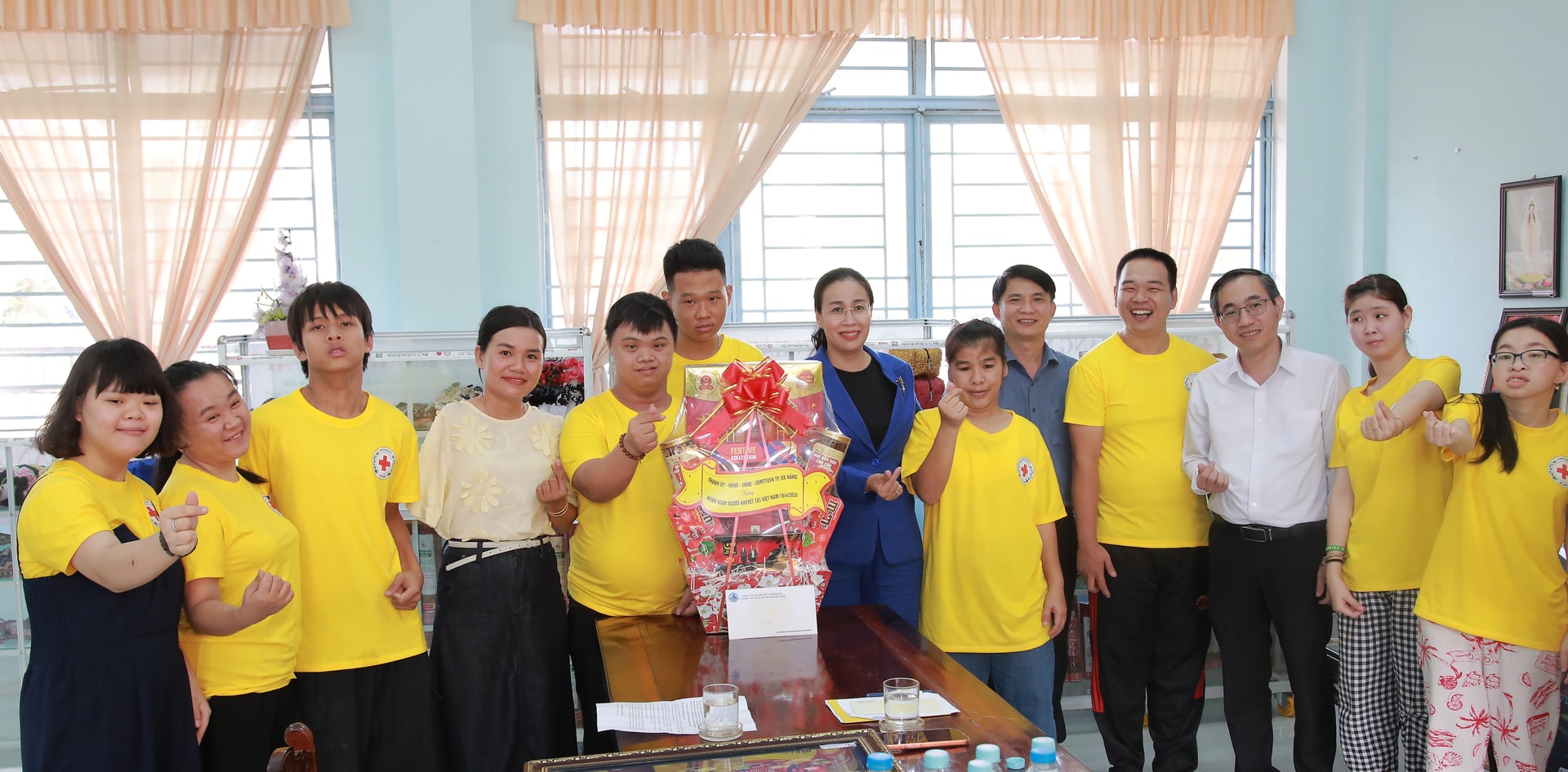 Trong khi đó, Trung tâm chăm sóc người cao tuổi và người khuyết tật Chữ thập đỏ thành phố đang nuôi dưỡng, chăm sóc 60 em khuyết tật trên địa bàn thành phố. Các em được chăm sóc, nuôi dưỡng và học các nghề miễn phí như: may thủ công, in lụa, thêu, làm hương, tranh giấy quilling…