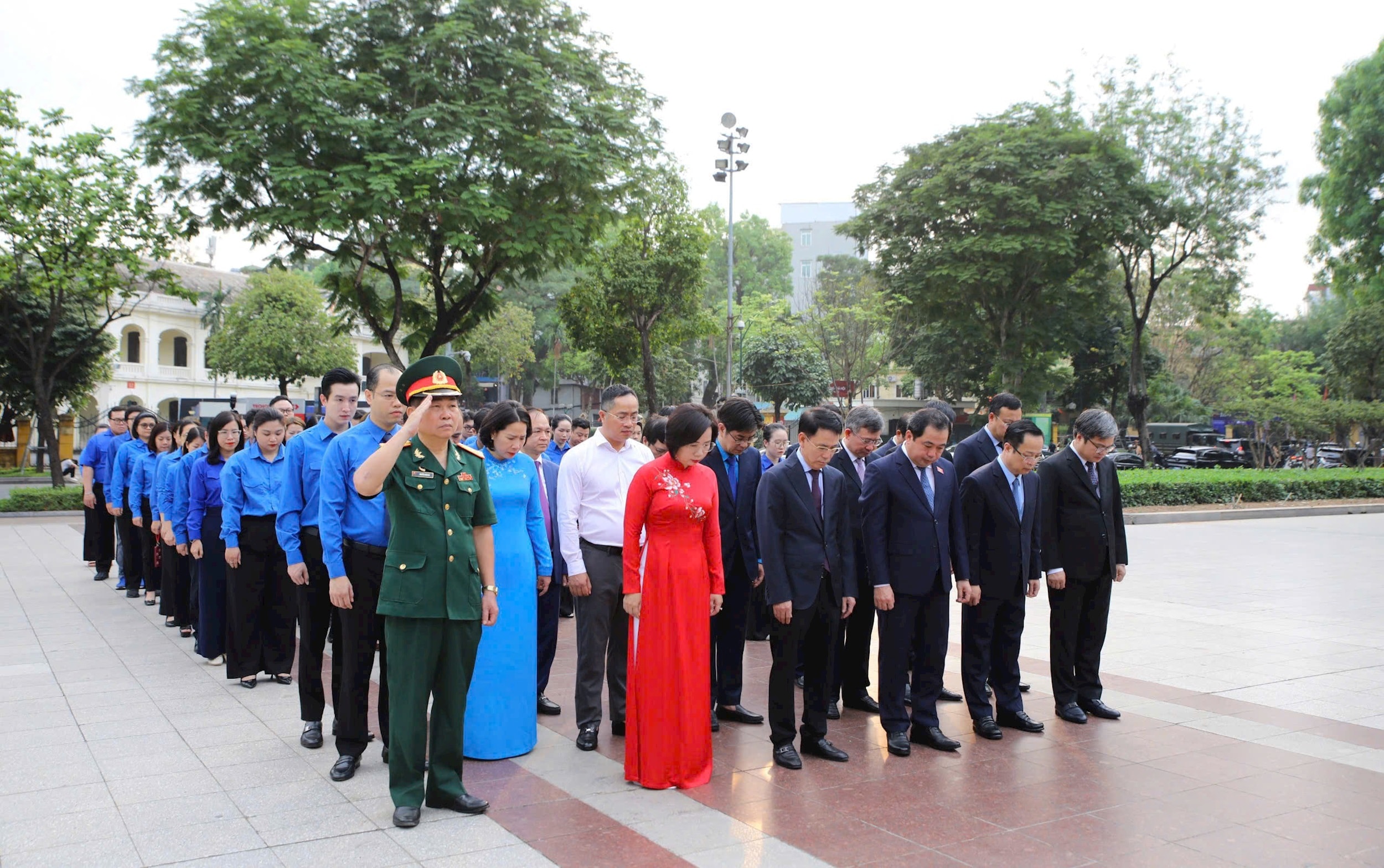 Cùng ngày, đại diện các cơ quan, đoàn thể, đơn vị của thành phố Hà Nội và tuổi trẻ Thủ đô đã đến dâng hoa tưởng niệm tại Tượng đài V.I.Lênin.