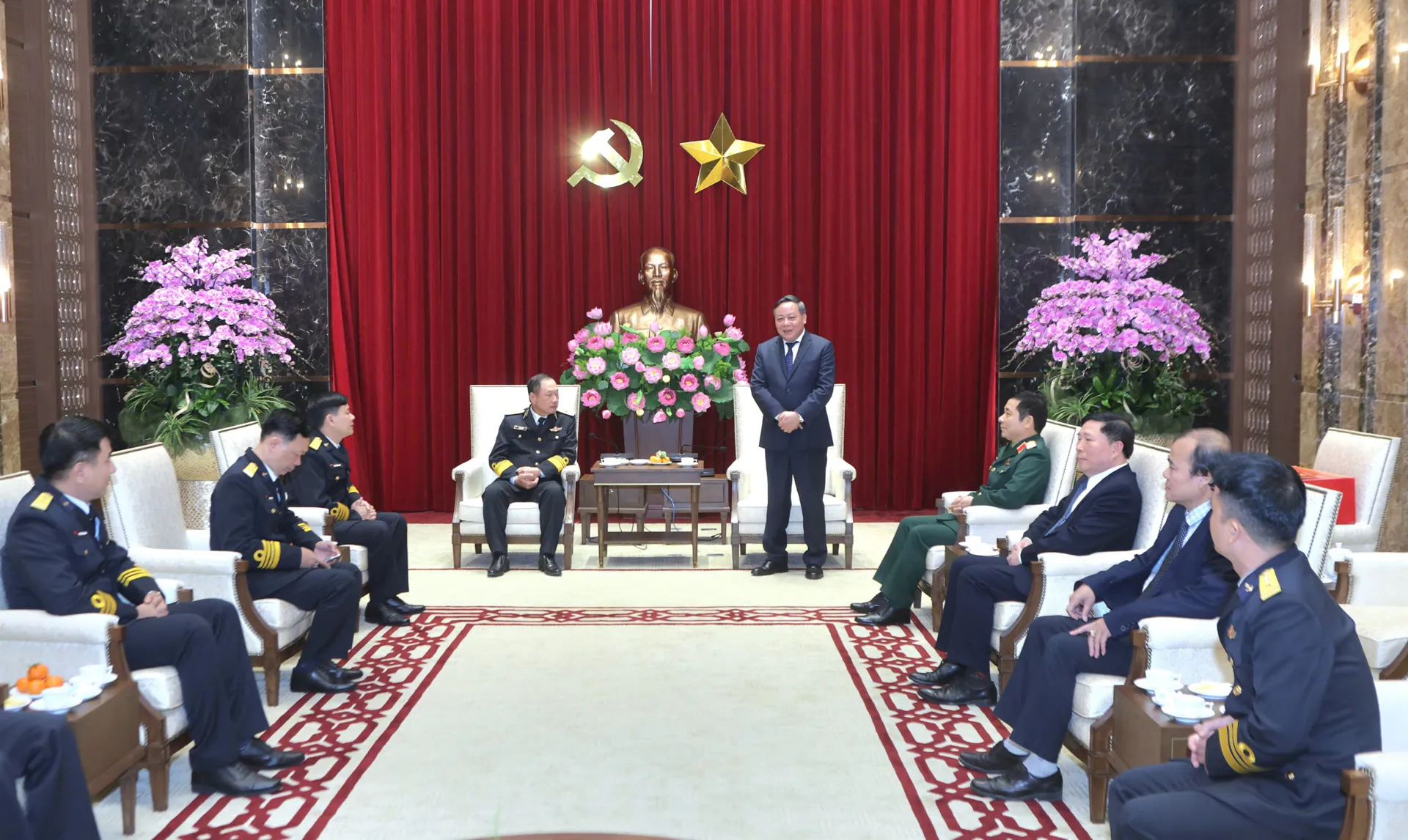 Nhân dịp đón Tết Nguyên đán Bính Ngọ 2026, Phó Bí thư Thường trực Thành ủy Hà Nội Nguyễn Văn Phong trân trọng gửi tới lãnh đạo Quân chủng Hải quân cùng toàn thể cán bộ, chiến sĩ lời chúc mừng năm mới sức khỏe, hạnh phúc, hoàn thành xuất sắc mọi nhiệm vụ được giao. Thành phố Hà Nội luôn gắn bó, đồng hành và sẽ tiếp tục ở bên cạnh Quân chủng Hải quân và các đơn vị làm nhiệm vụ bảo vệ chủ quyền biển, đảo của Tổ quốc.