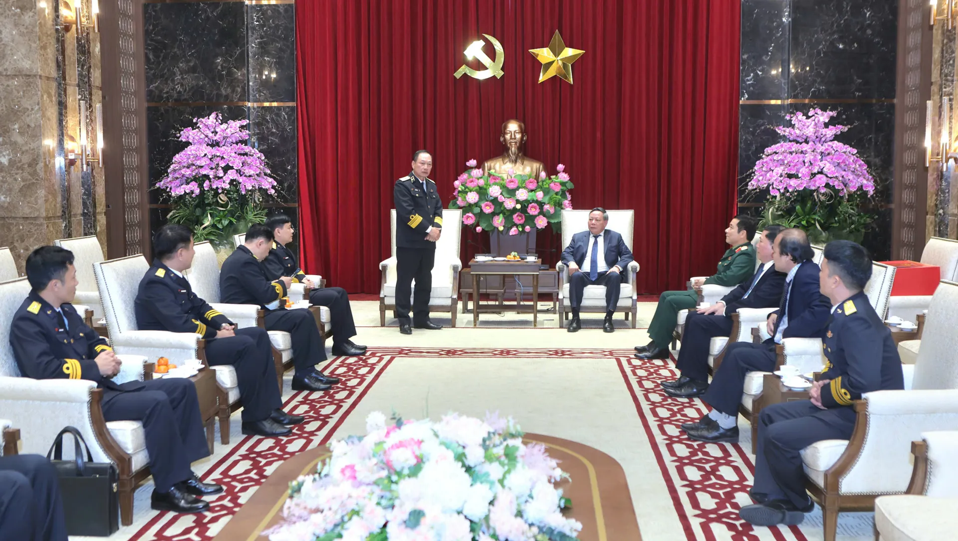 Phát biểu tại buổi tiếp, Phó Bí thư Thường trực Thành ủy Nguyễn Văn Phong trân trọng gửi lời cảm ơn đến Đoàn công tác của Quân chủng Hải quân, Lữ đoàn tàu ngầm 189 và Tàu ngầm 182 - Hà Nội. Đồng thời bày tỏ vui mừng được đón đoàn công tác đến thăm, chúc Tết Đảng bộ, chính quyền và Nhân dân Thủ đô đúng vào dịp kỷ niệm 96 năm Ngày thành lập Đảng Cộng sản Việt Nam.