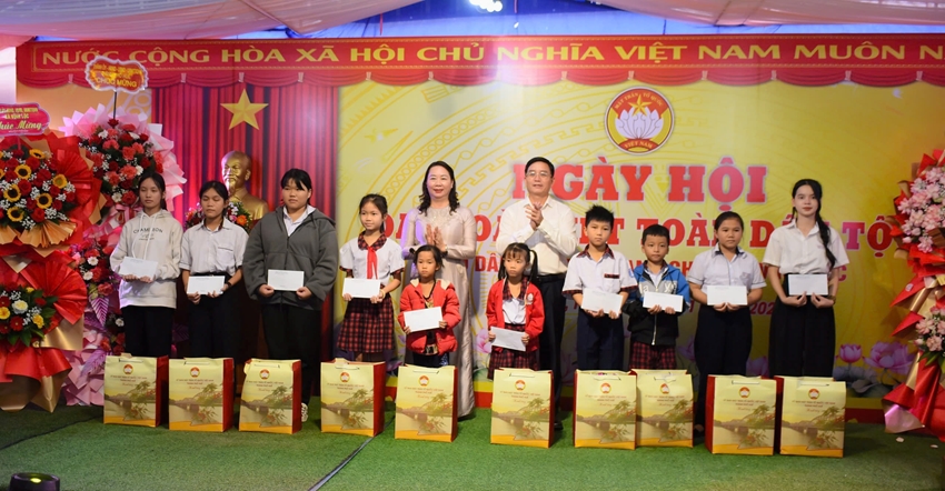 Khen thưởng học sinh giỏi của tổ dân phố Hòa An tại ngày hội