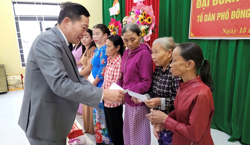 Phó Chủ tịch HĐND thành phố Hà Văn Tuấn trao quà cho người dân tổ dân phố Đông Phú, phường Phong Dinh