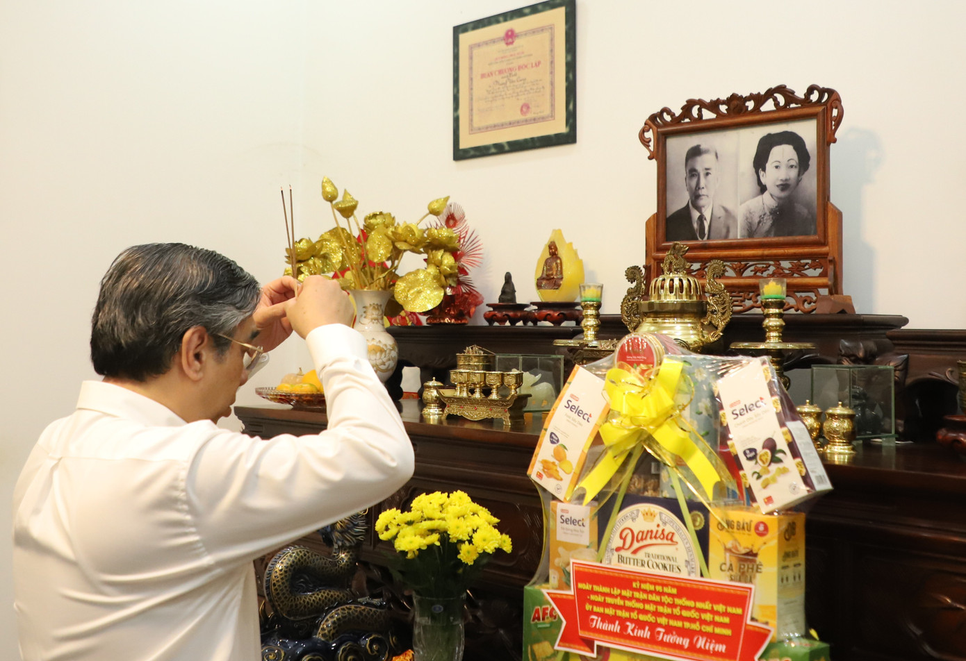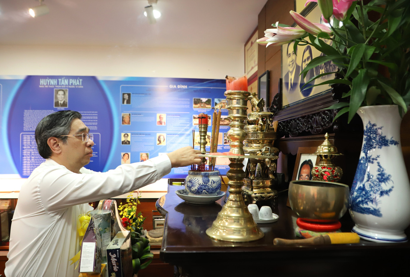 Phó Bí thư Thành ủy TPHCM Nguyễn Phước Lộc thắp hương tưởng nhớ kiến trúc sư Huỳnh Tấn Phát.