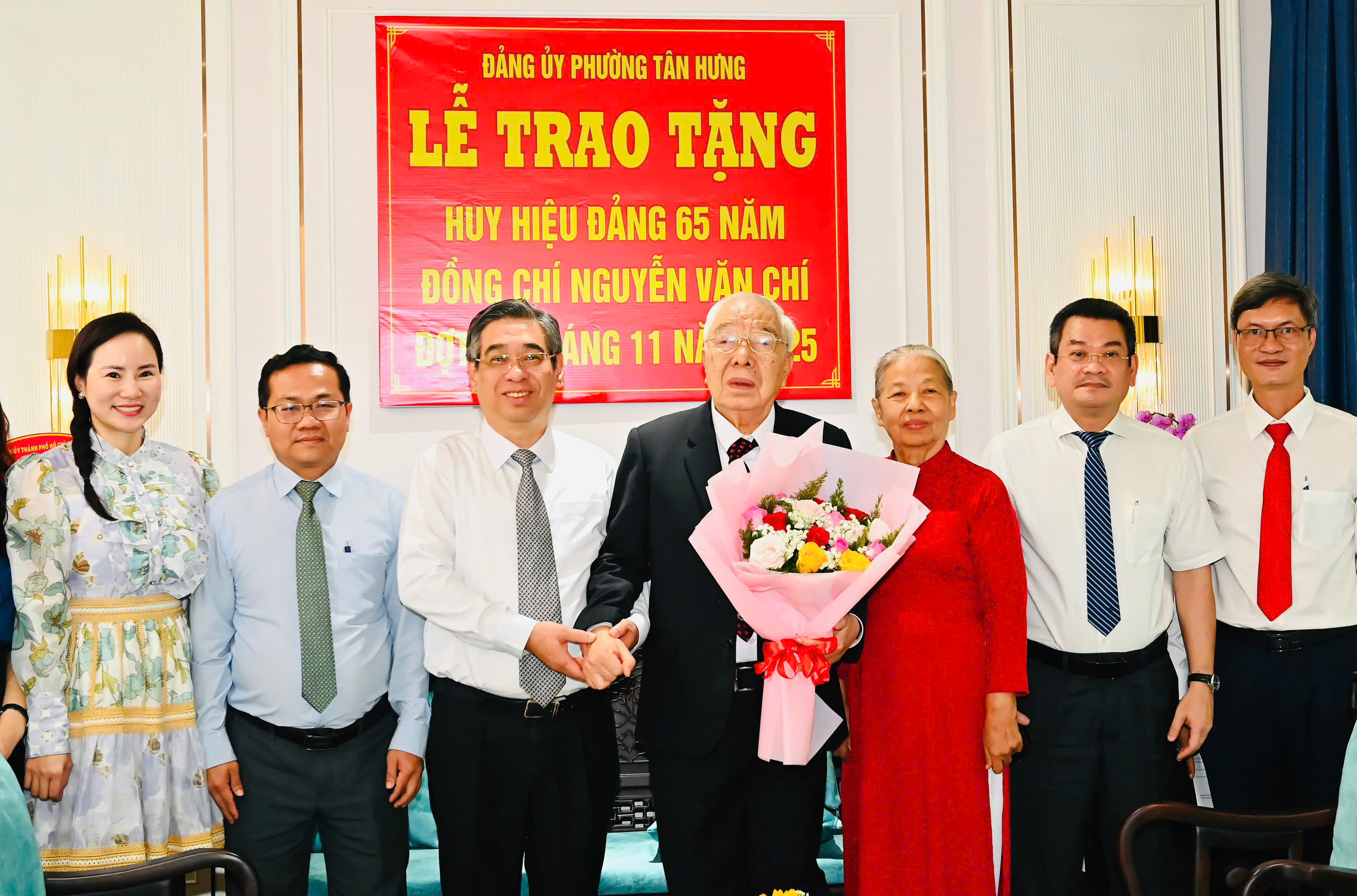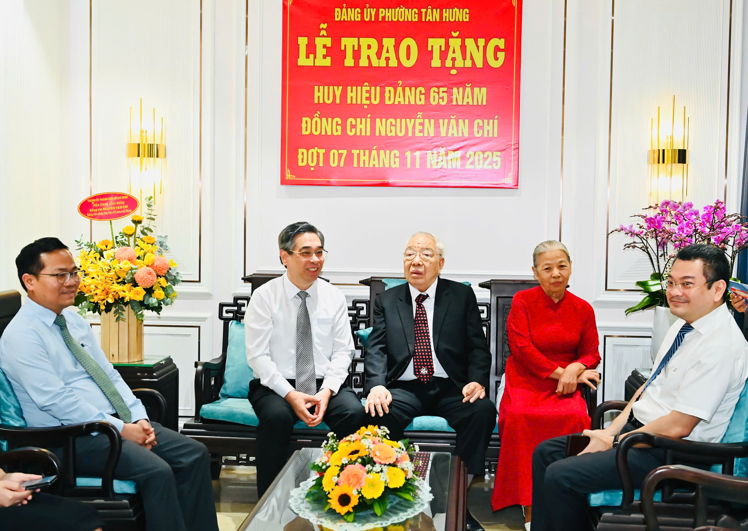 Chiều 5-11, Đảng ủy phường Tân Hưng (TPHCM) tổ chức lễ trao tặng Huy hiệu 65 năm tuổi Đảng đến đồng chí Nguyễn Văn Chí (đảng viên sinh hoạt tại Đảng bộ phường Tân Hưng) đợt ngày 7-11-2025.
