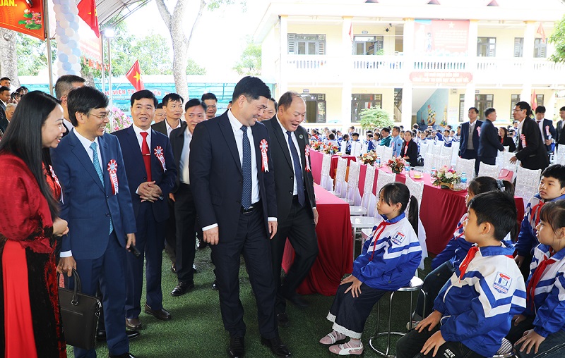Thừa ủy quyền của Chủ tịch nước, Bí thư Tỉnh ủy Nguyễn Hồng Thái trao Huân chương Lao động hạng Nhì cho Trường Tiểu học Bố Hạ.