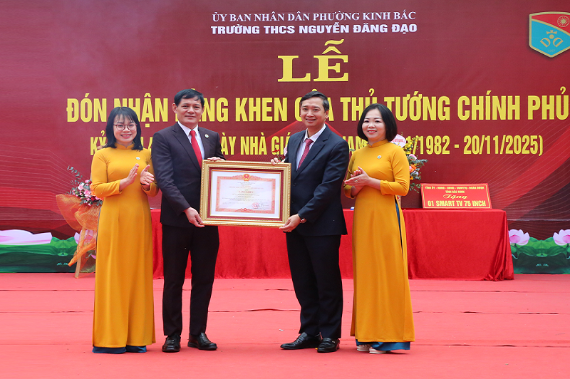 Cùng ngày, Chủ tịch HĐND tỉnh Bắc Ninh Nguyễn Việt Oanh đã đến dự Lễ kỷ niệm 43 năm Ngày Nhà giáo Việt Nam và đón nhận Bằng khen của Thủ tướng Chính phủ tại Trường THCS Nguyễn Đăng Đạo (phường Kinh Bắc).