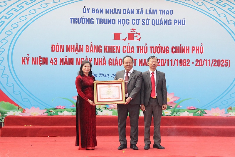 Tại Trường THCS Quảng Phú (xã Lâm Thao), Phó Chủ tịch HĐND tỉnh Lâm Thị Hương Thành đã tham dự Lễ đón nhận Bằng khen của Thủ tướng Chính phủ.
