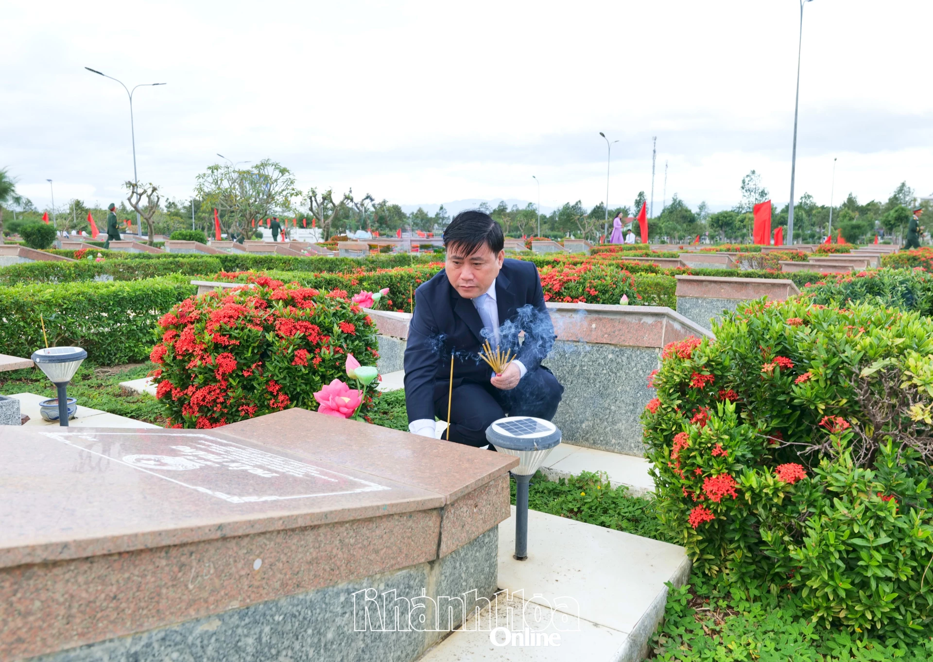 Sau lễ viếng, dâng hương, dâng hoa, lãnh đạo tỉnh và các đại biểu đã thắp hương từng mộ phần các anh hùng liệt sĩ đang yên nghỉ tại Nghĩa trang liệt sĩ Ninh Thuận.