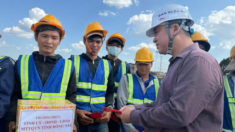Lãnh đạo tỉnh Đồng Nai tặng quà Tết động viên người lao động thi công dự án thành phần 1 cao tốc Biên Hòa-Vũng Tàu.