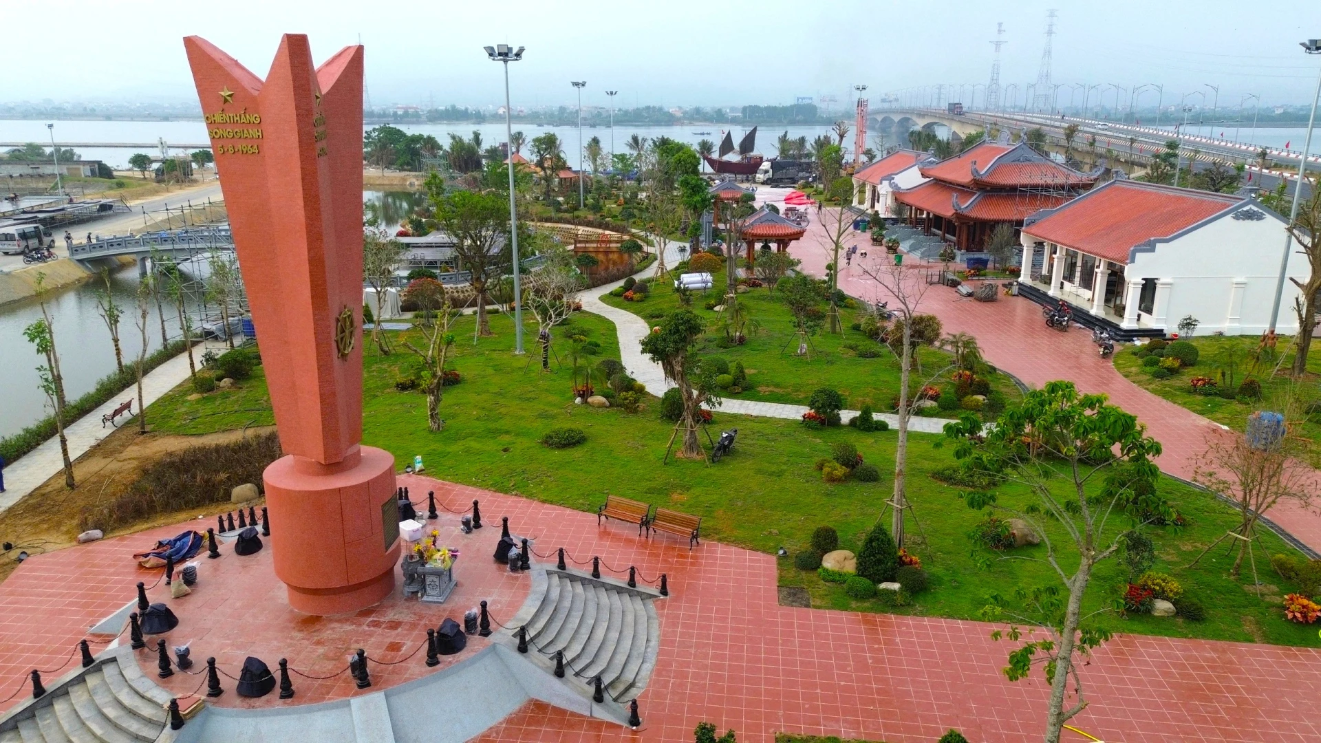 Toàn cảnh Khu Di tích lịch sử quốc gia đặc biệt Bến phà Gianh vừa được tôn tạo.