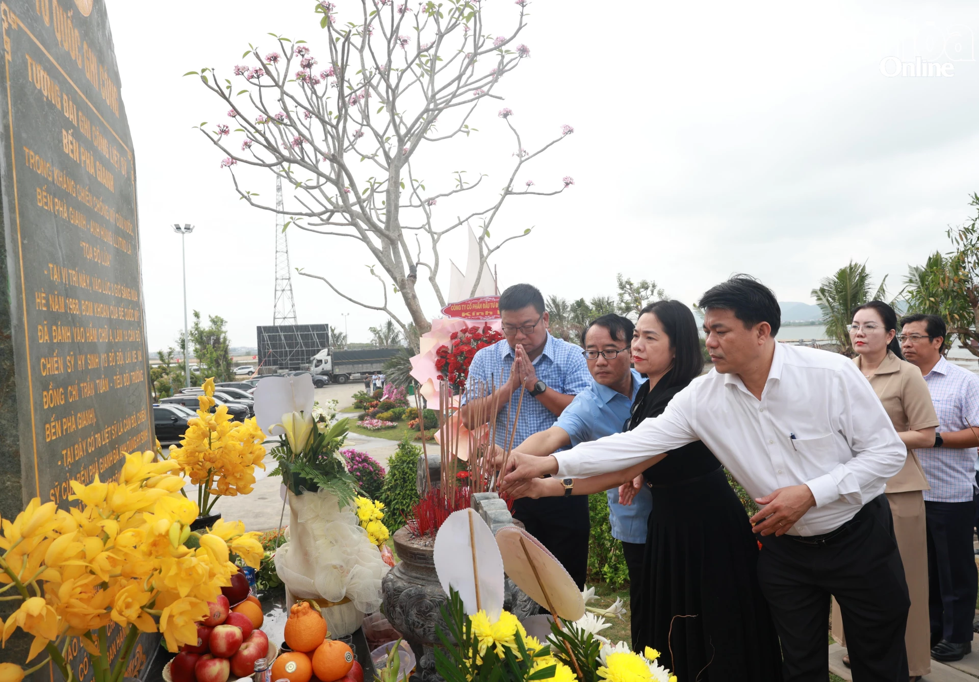 Đoàn công tác tỉnh Khánh Hòa dâng hương tại tượng đài ghi công liệt sĩ bến phà Gianh.