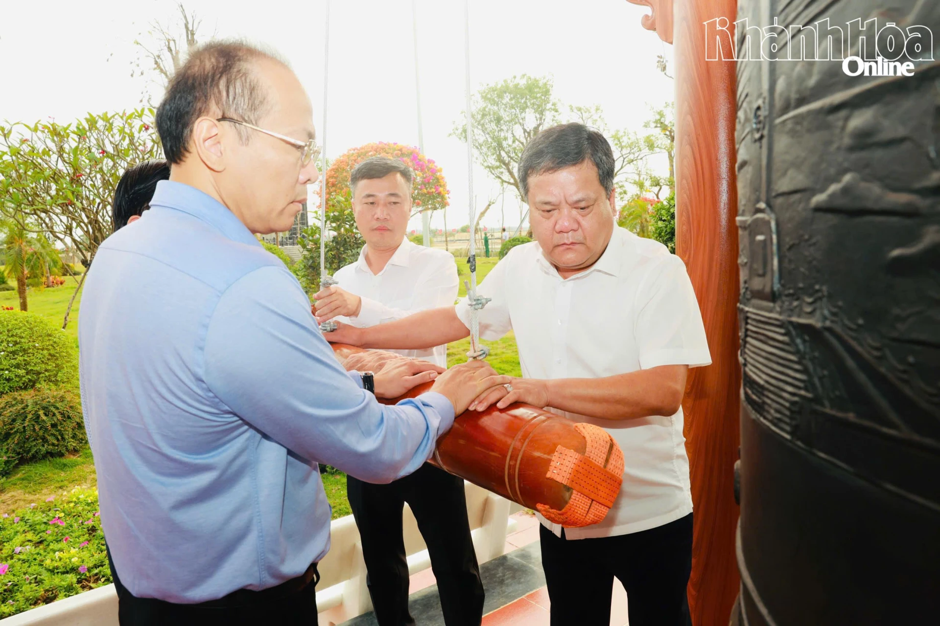 Bí thư Tỉnh ủy Trần Phong cùng các đồng chí trong Thường trực Tỉnh ủy thỉnh chuông.