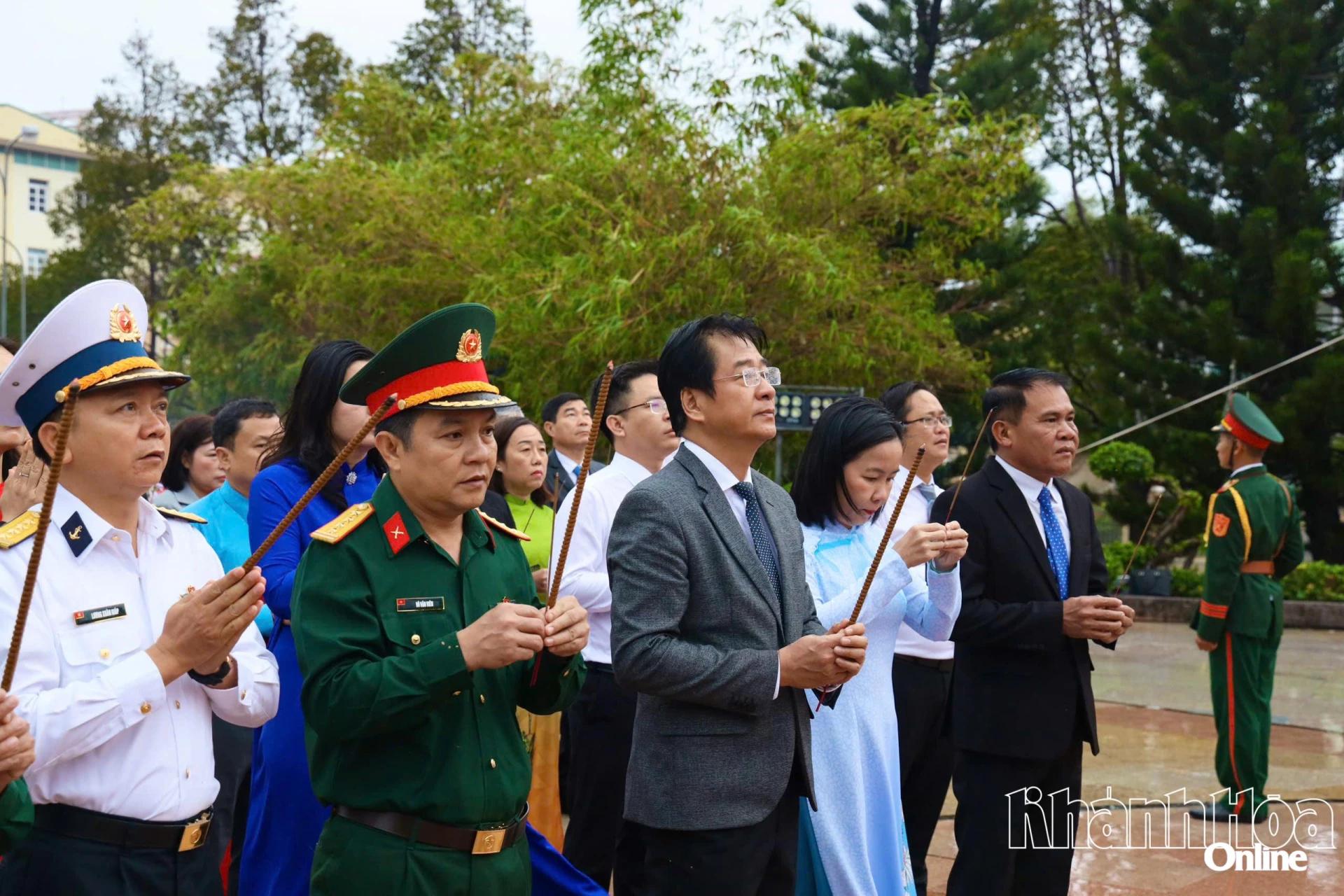 Đoàn đại biểu của Tỉnh ủy, HĐND, UBND, Ủy ban MTTQ Việt Nam tỉnh do đồng chí Nguyễn Khắc Hà - Phó Bí thư Tỉnh ủy, Chủ tịch Ủy ban MTTQ Việt Nam tỉnh dẫn đầu đến dâng hoa, dâng hương tại Tượng đài Bác Hồ.
