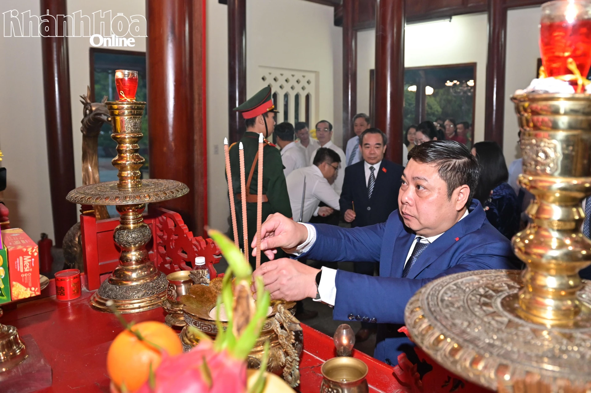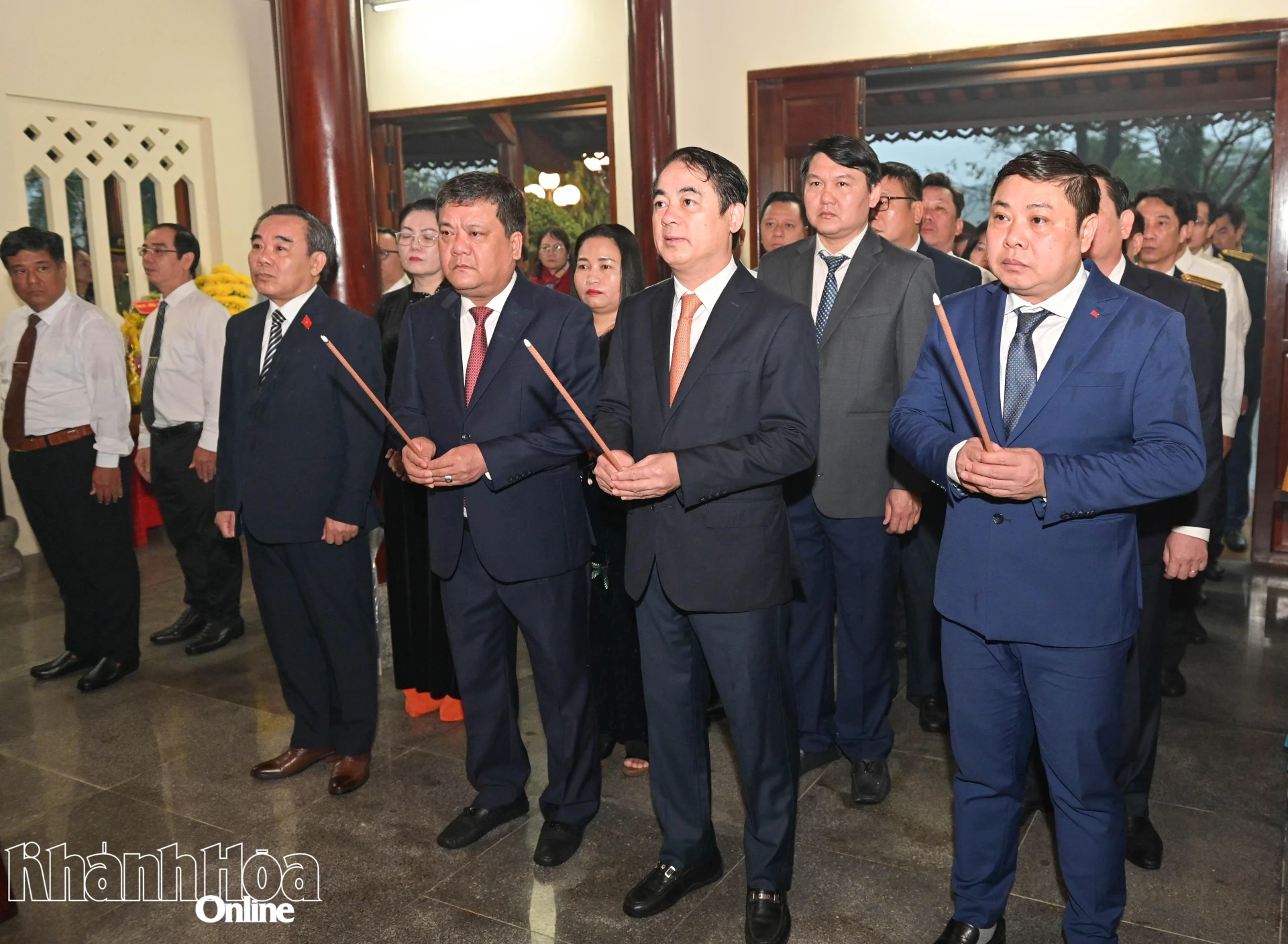 Sau lễ viếng tại Nghĩa trang liệt sĩ Hòn Dung, các đại biểu đã đến dâng hương tưởng niệm các anh hùng, liệt sĩ tại Điện thờ Tháp Trầm Hương (phường Nha Trang).