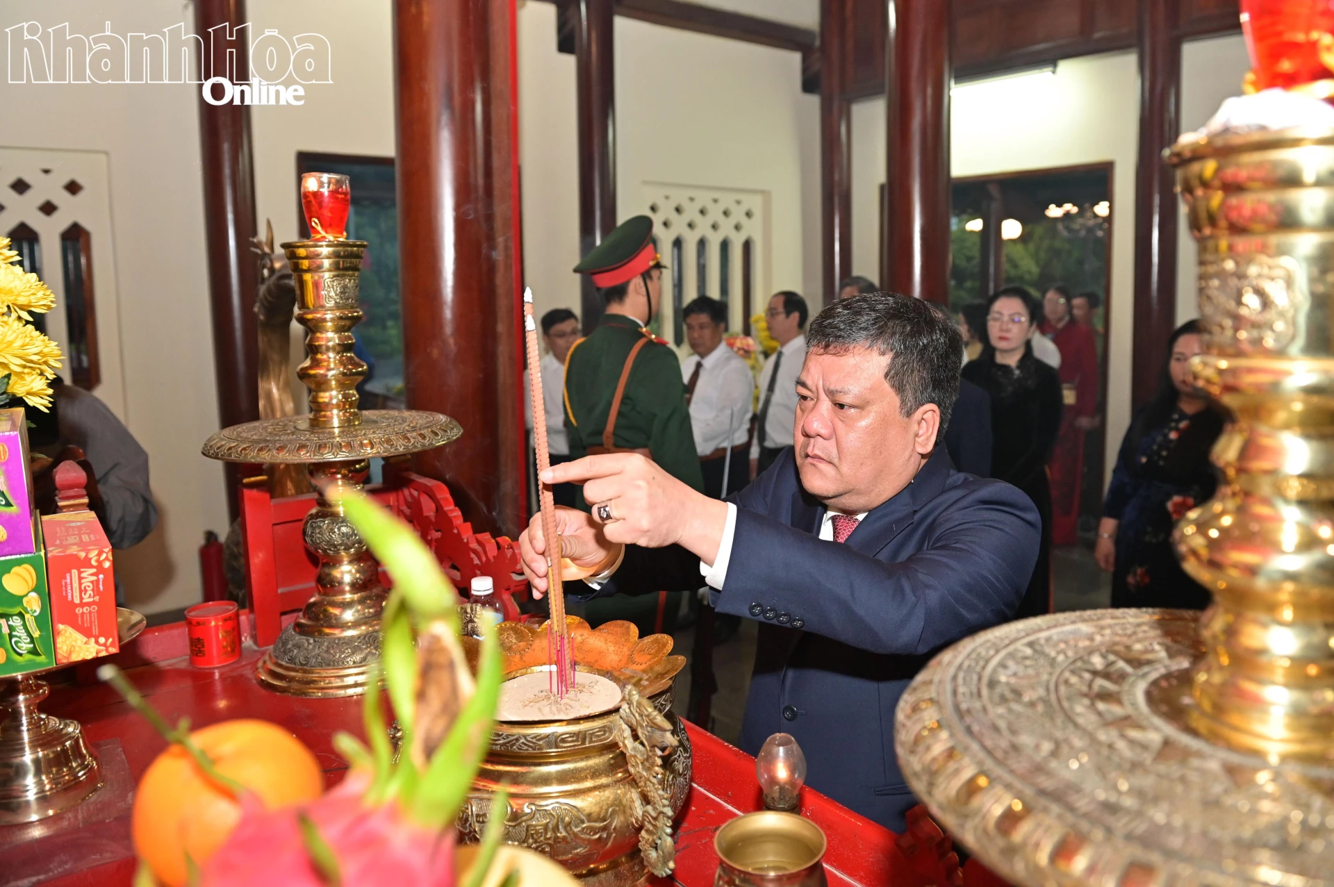 Các đồng chí lãnh đạo dâng hương viếng Chủ tịch Hồ Chí Minh tại Đền thờ Bác Hồ trong khuôn viên Nghĩa trang liệt sĩ Hòn Dung.