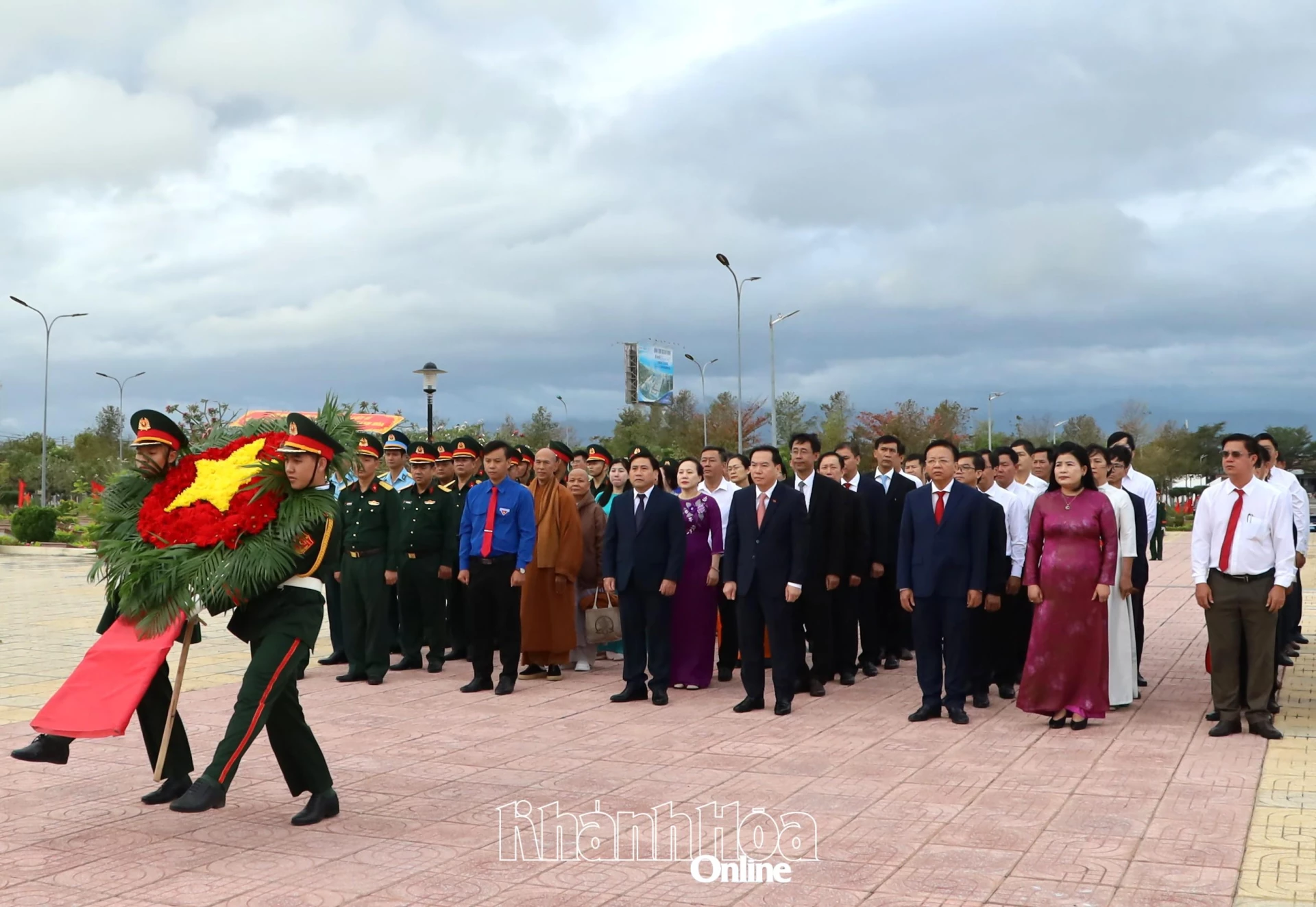 Đoàn đại biểu Ban Chấp hành Đảng bộ tỉnh do đồng chí Hồ Xuân Trường - Ủy viên dự khuyết Trung ương Đảng, Phó Bí thư Thường trực Tỉnh ủy dẫn đầu, vòng hoa mang dòng chữ: “Đời đời nhớ ơn các anh hùng, liệt sĩ”. Cùng đi có các đồng chí: Lâm Đông - Phó Bí thư Tỉnh ủy, Chủ tịch HĐND tỉnh; Lê Huyền - Phó Chủ tịch UBND tỉnh; Đàng Thị Mỹ Hương - Phó Trưởng đoàn chuyên trách Đoàn Đại biểu Quốc hội tỉnh; lãnh đạo các sở, ban, ngành của tỉnh.