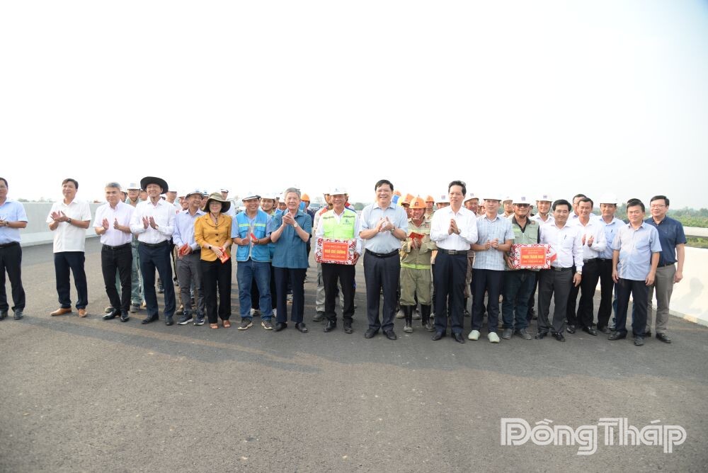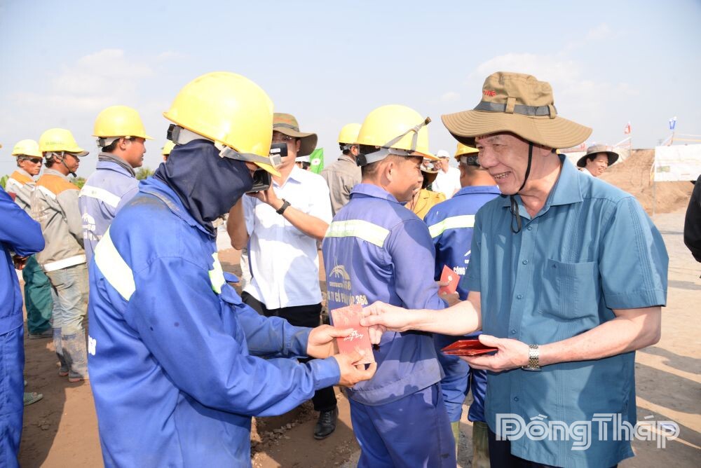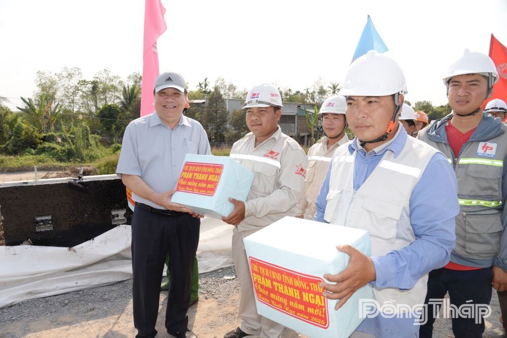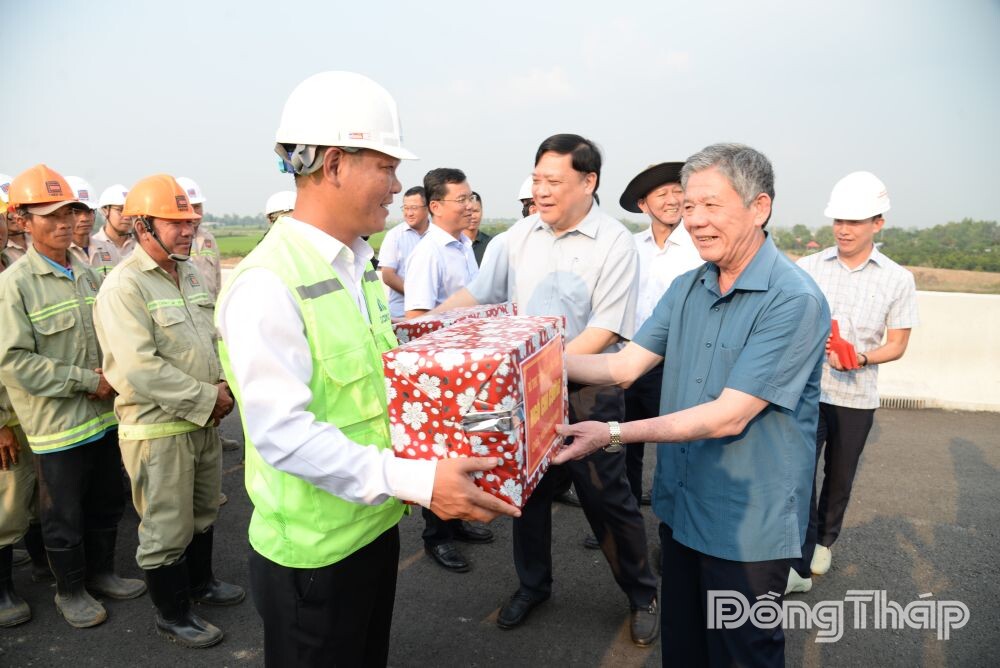 Dịp này, lãnh đạo tỉnh đã tặng quà, chúc tết công nhân tham gia thi công dự án nhân dịp năm mới.